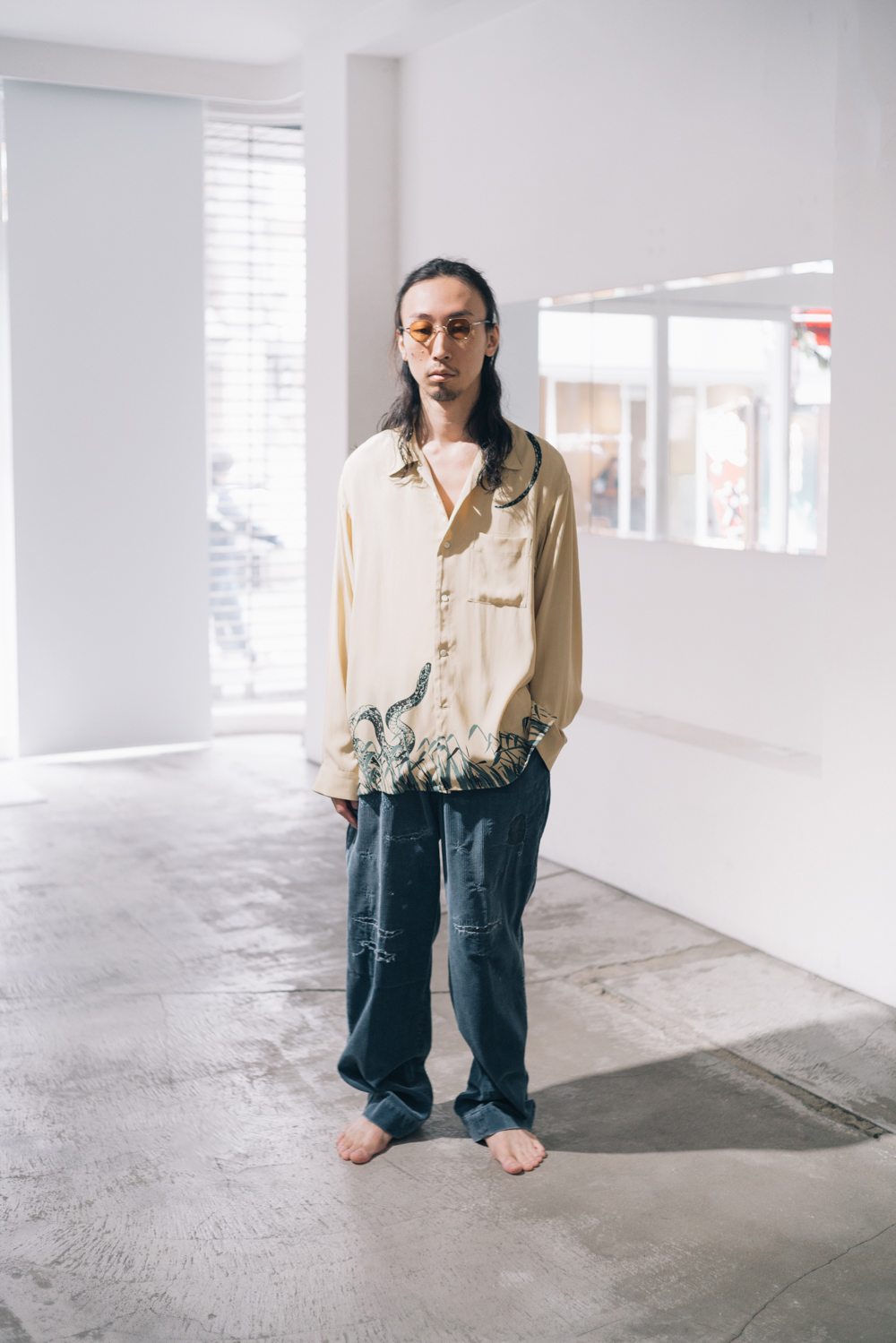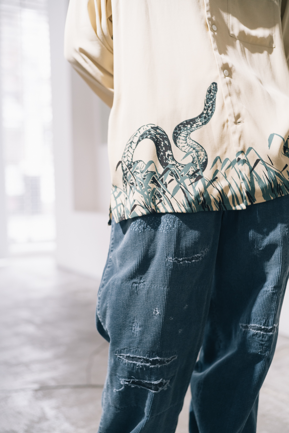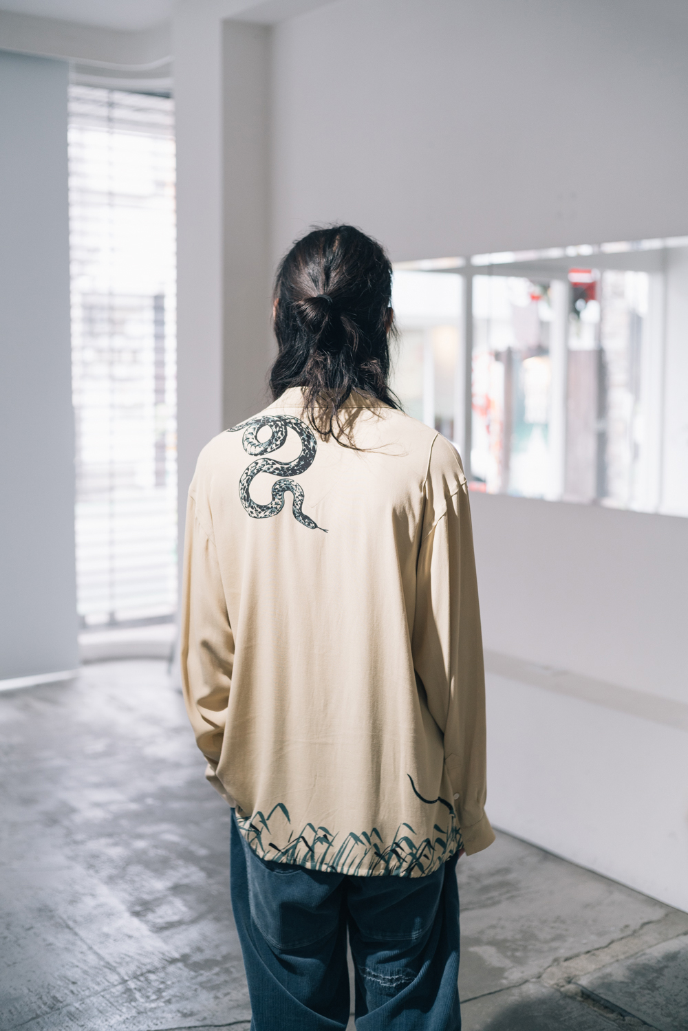 ORIGINAL PRINTED OPEN COLLAR SHIRTS “Hebi” Long-sleeve