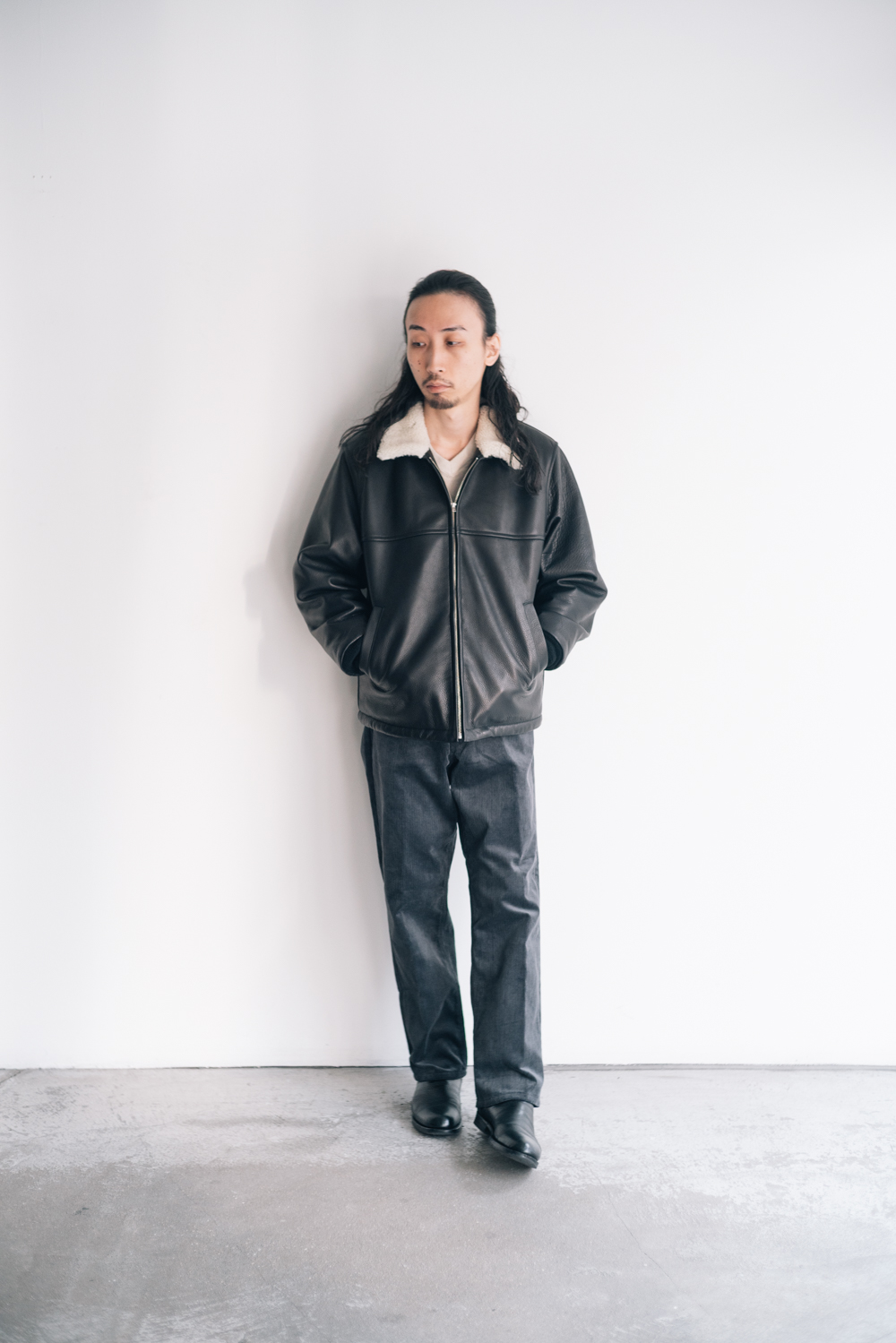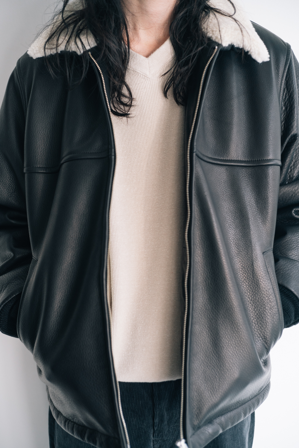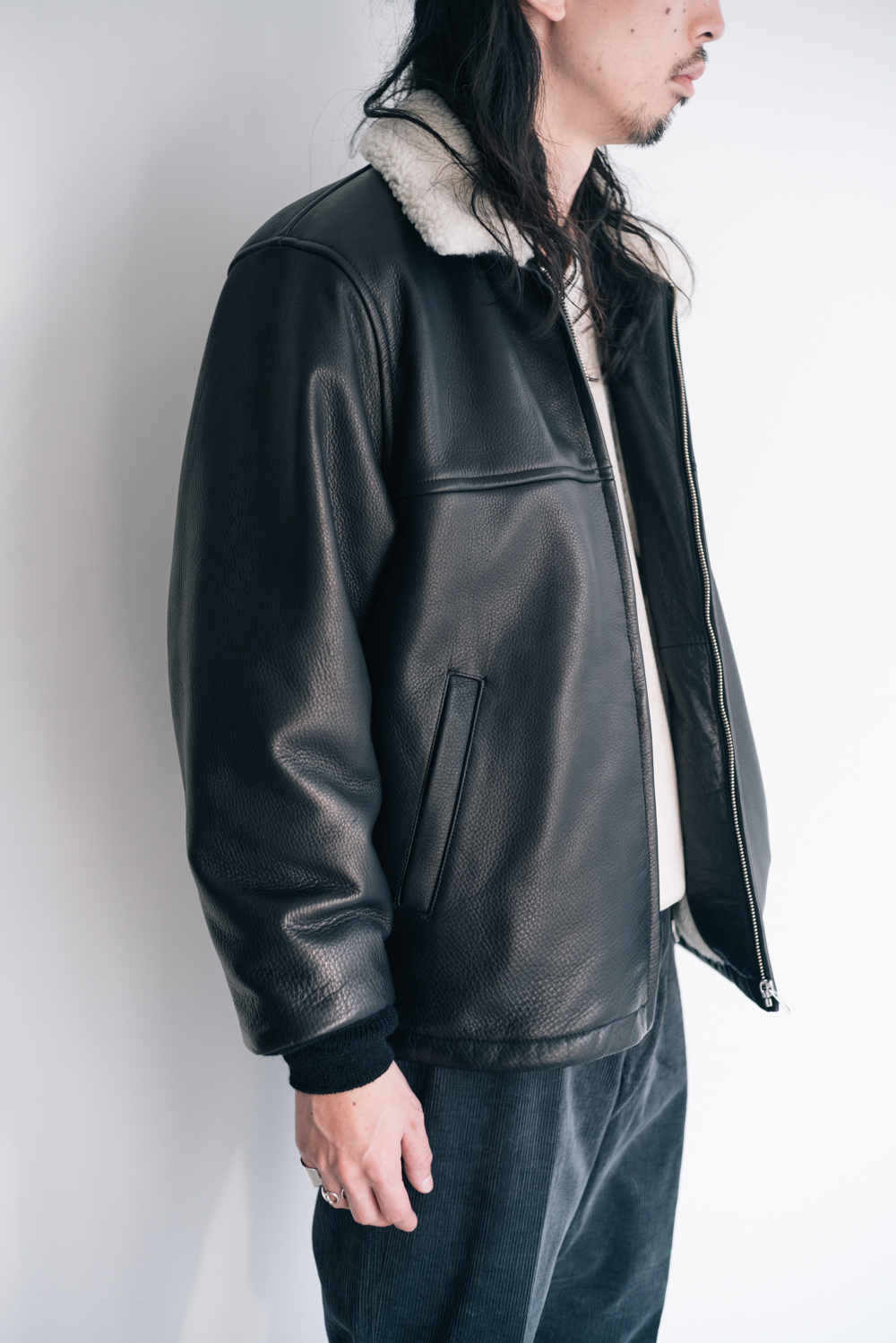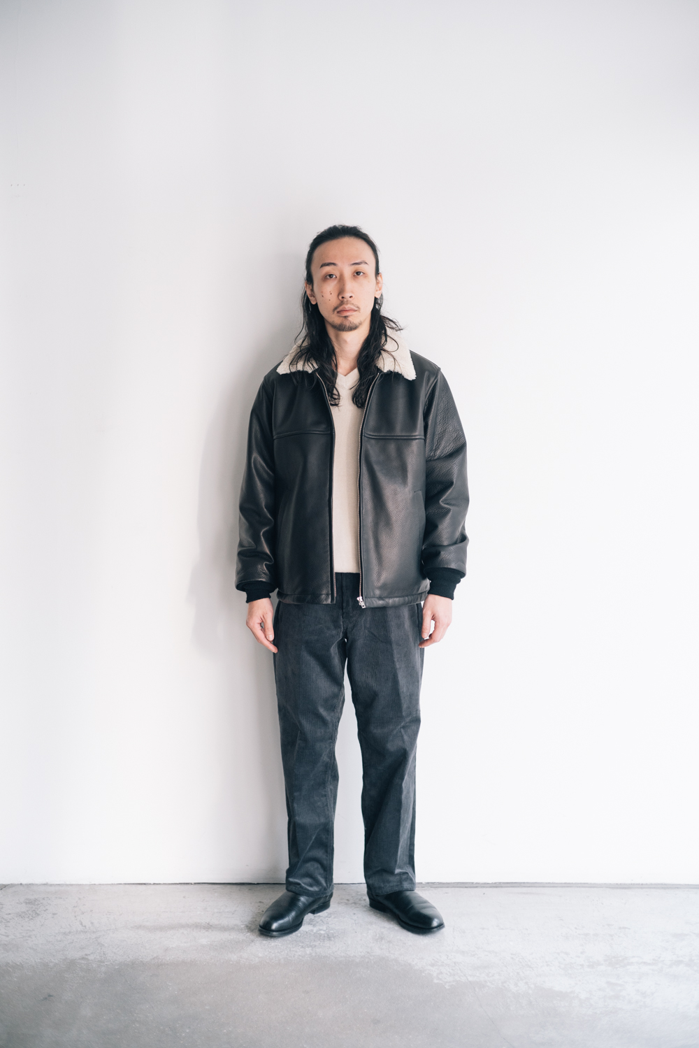 <WACKO MARIA> LEATHER BOA JACKET Lee / CORDUROY PANTS <OLD JOE> V-NECK SILK NEP RIBED TOPS http://kaddish.jp/blog/98521