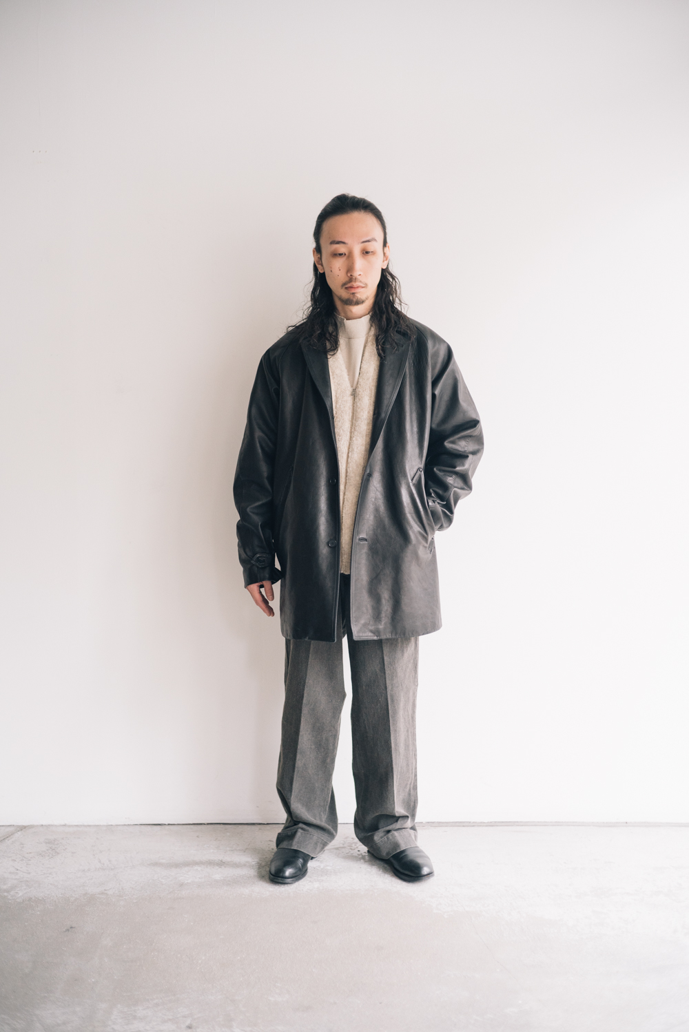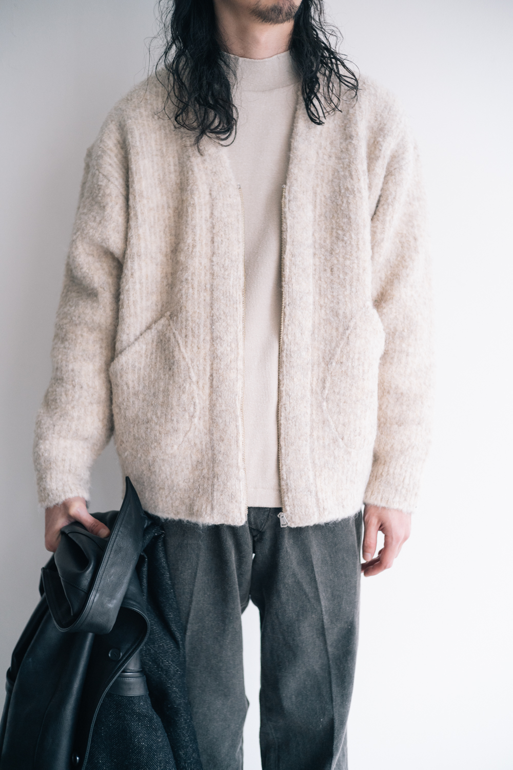 <OLD JOE> PATINA HORSE-HIDE VEHICLE COAT BOUCLE ALPAKA ZIP CARDIGAN MOCK-NECK SILK NEP RIBED TOPS PADED BACK ROVER TROUSER http://kaddish.jp/blog/98714