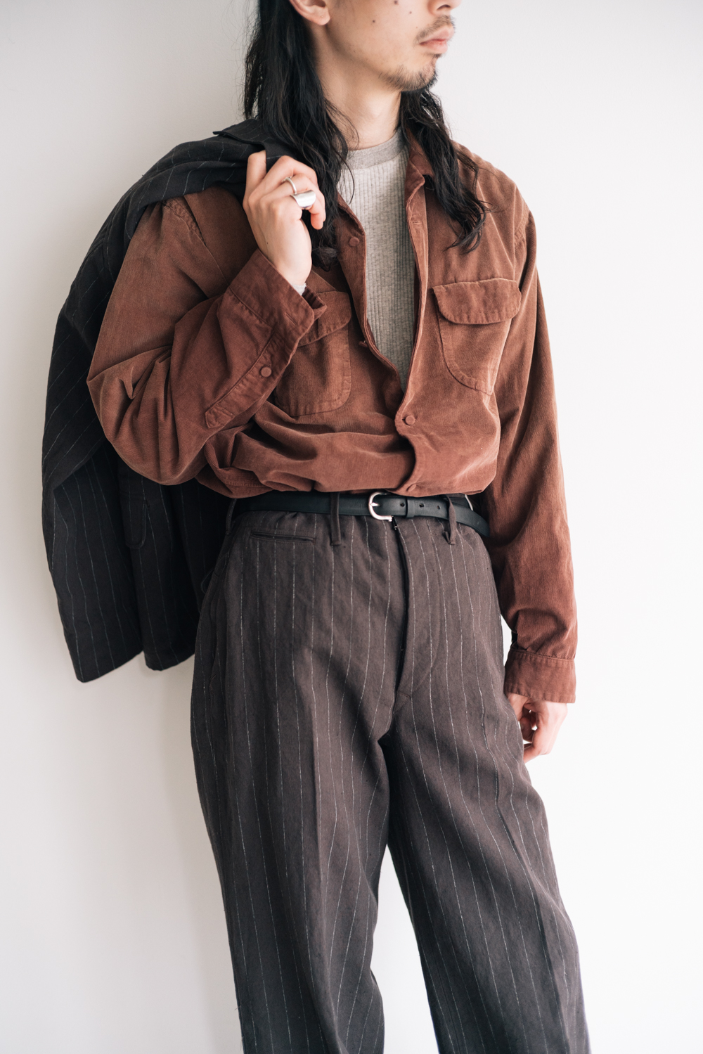 <OLD JOE> NOTCHED-RAPEL GEORGES JACKET SWALLOW COLLAR NASSOU SHIRTS CREW-NECK COTTON YAK RIBED TOPS STUNNING LEATHER SKINNY BELT PADED-BACK ROVER TROUSER http://kaddish.jp/blog/99562