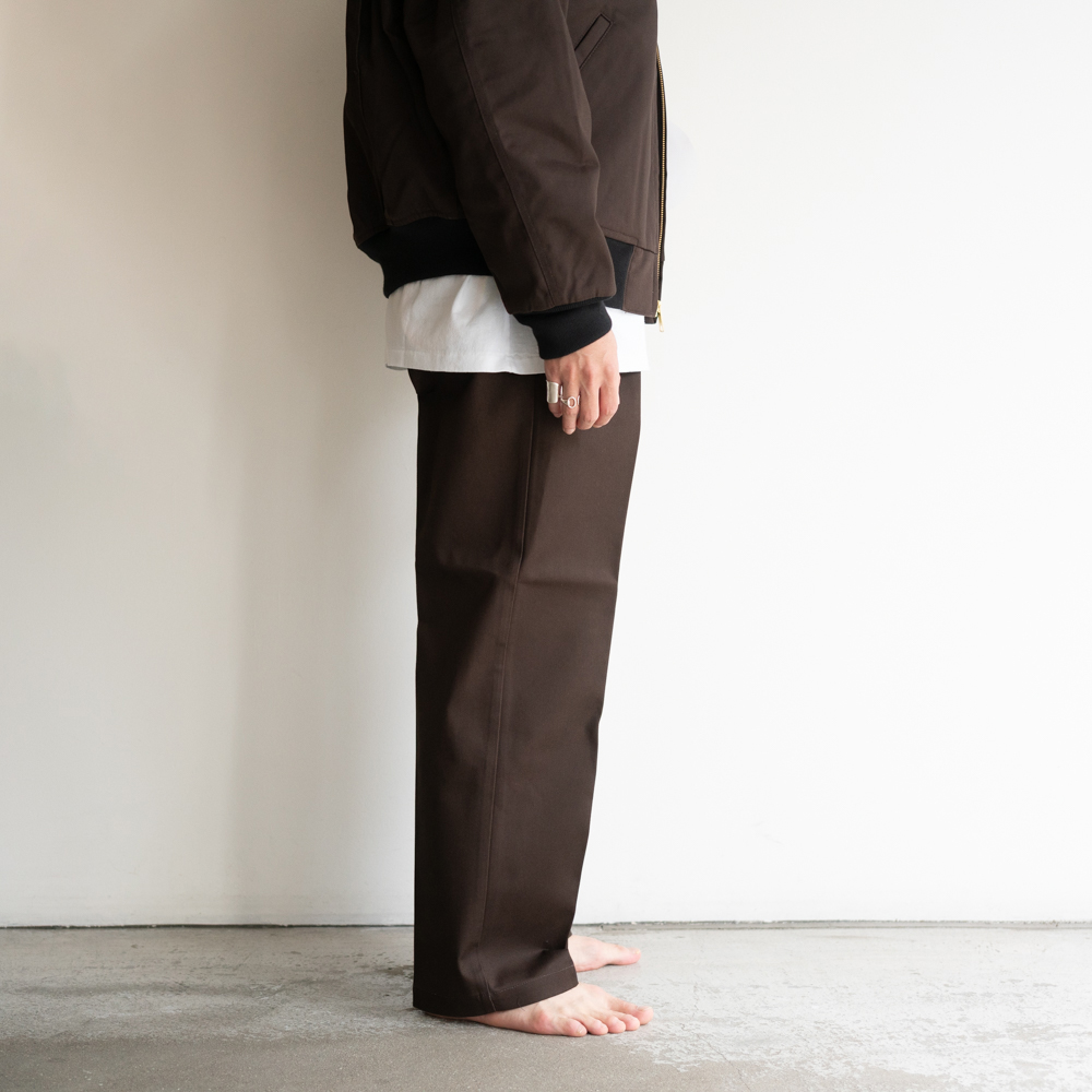 タフでハリのあるDICKIESのポリエステル/コットンを使用した、プリーツ入りのワイドなトラウザーです。