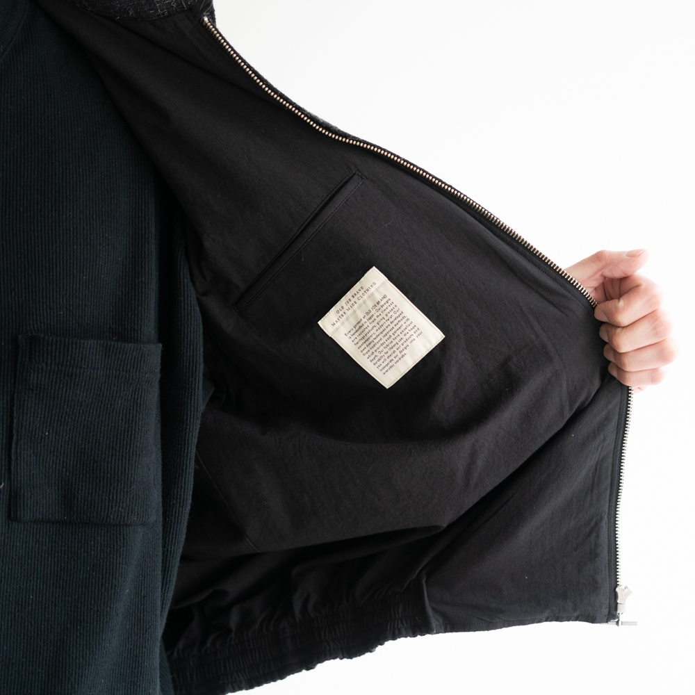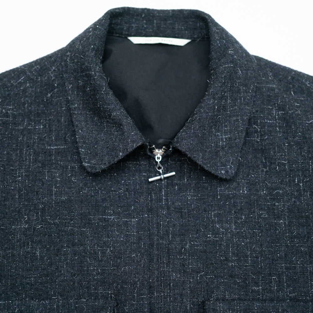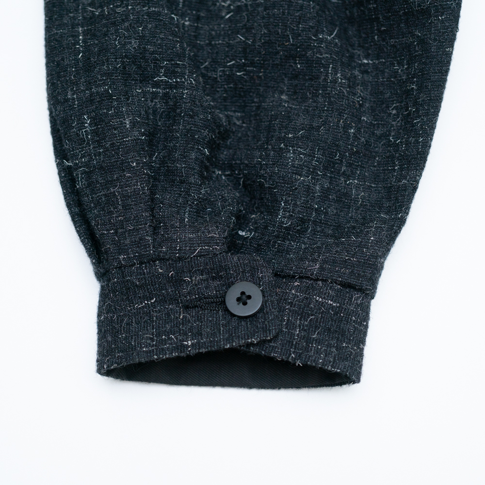 程よい丸みをつけた開き気味の襟に、プリーツを備えたフロントポケット、静かに主張するAMFステッチなどのミッドセンチュリー期のアーカイブデザインよりインスパイアされたポップなディテールが特徴的。
