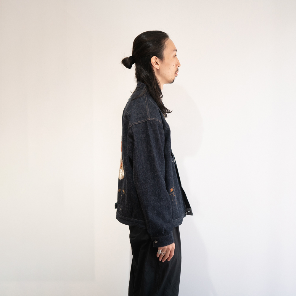 私たちのシグネチャーのデニムをベースに日本の伝統的なテクニックに倣い、古き良き美しい日本の原風景を刺繍したプロダクト。