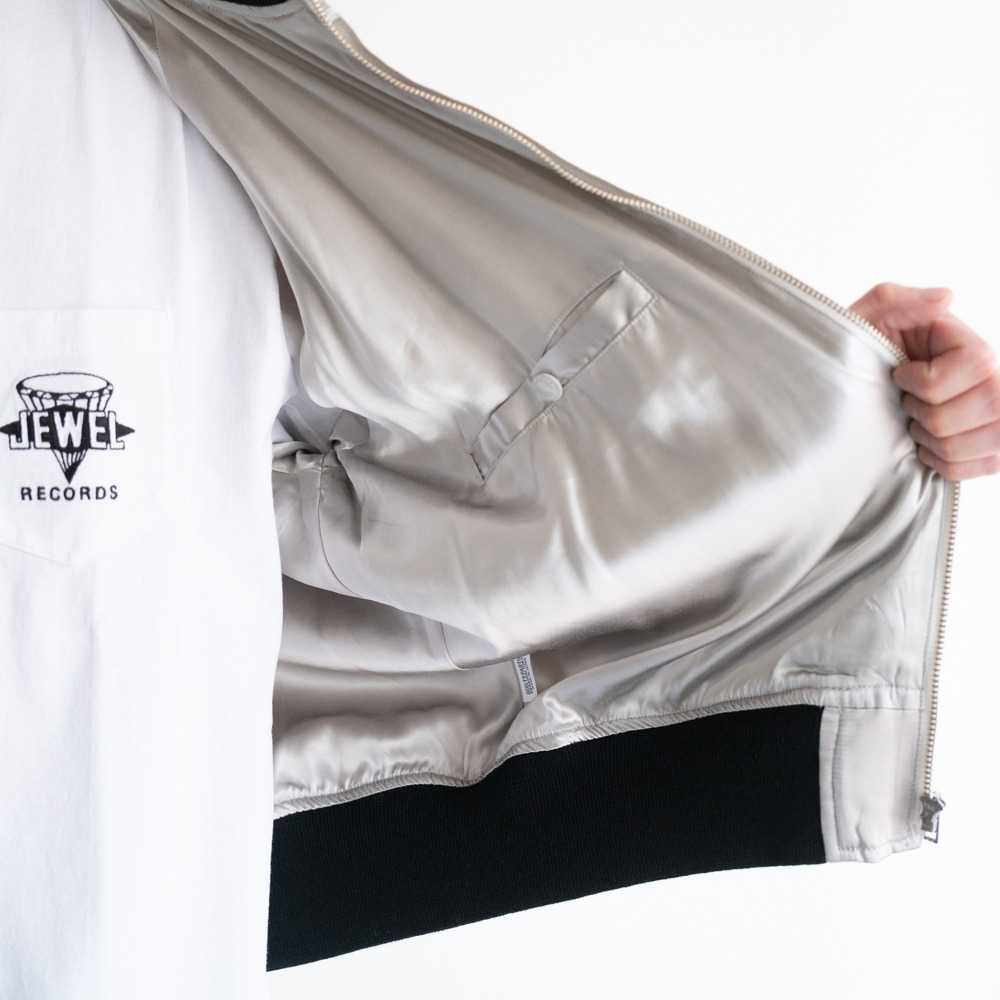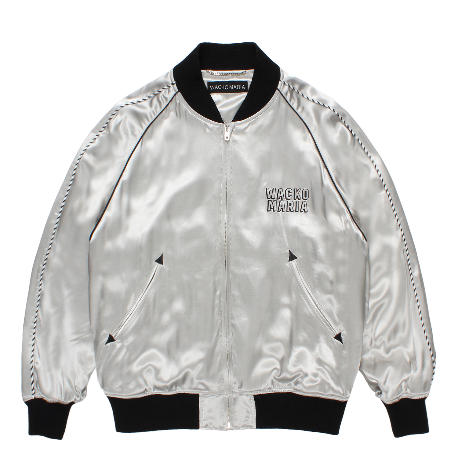 レーヨン生地にWACKOMARIA(ワコマリア)のロゴを刺繍したスカジャケット。