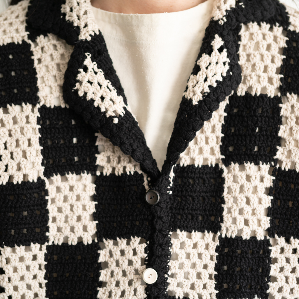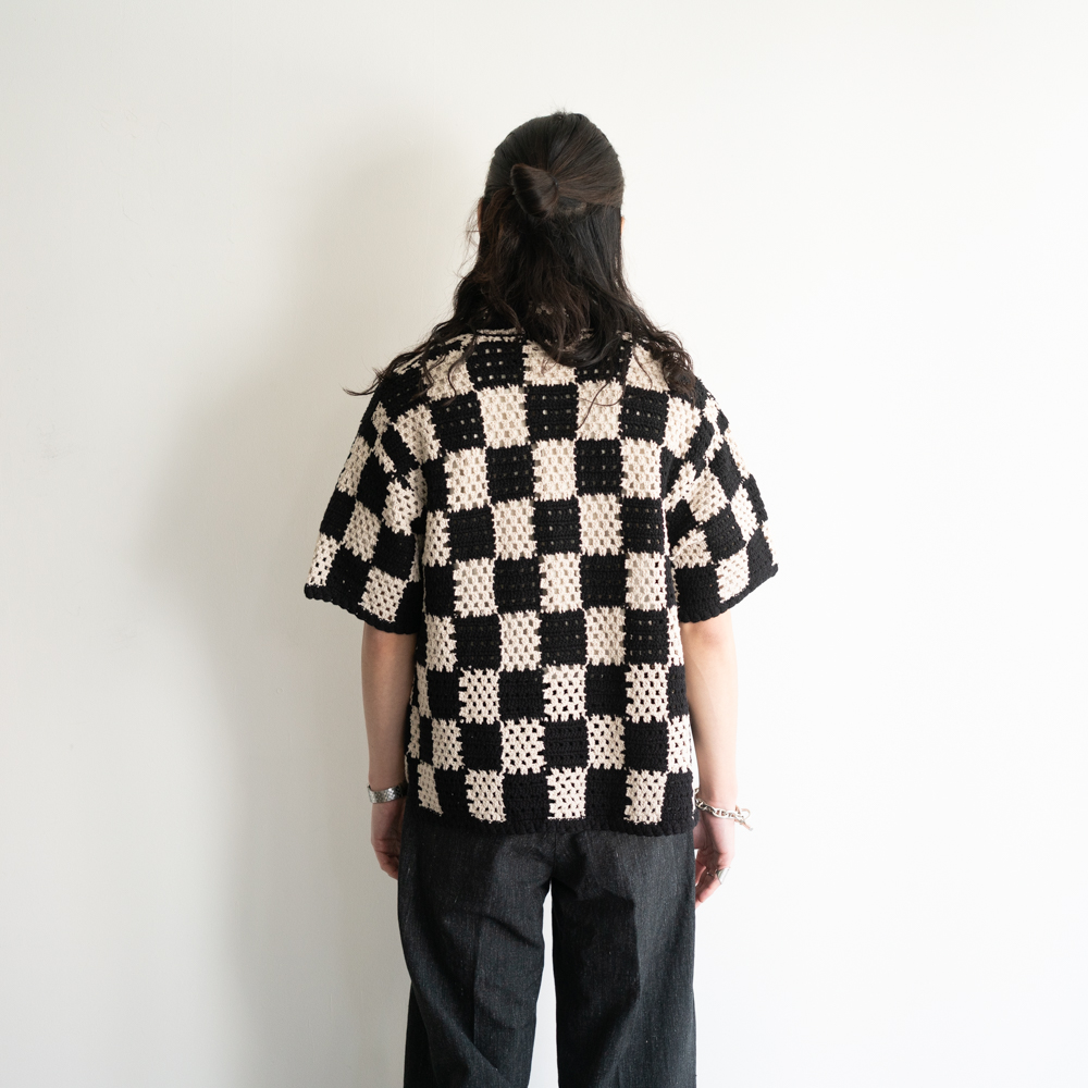 古い手編みのかぎ針柄をモチーフにサマーシャツとして仕上げたOLD JOEのクロシェニット。