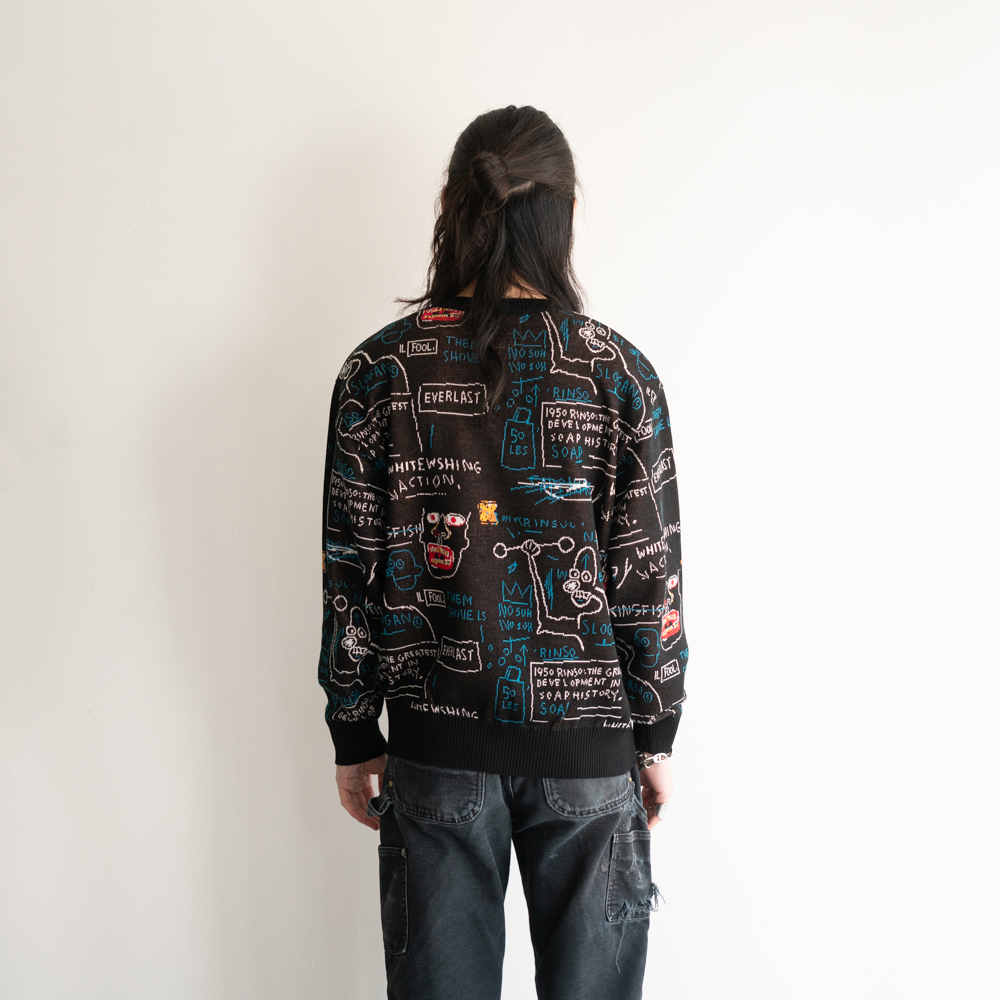 コットン/レーヨンのニットに、彼の作品を全面にジャガードで表現した大胆な1着です。