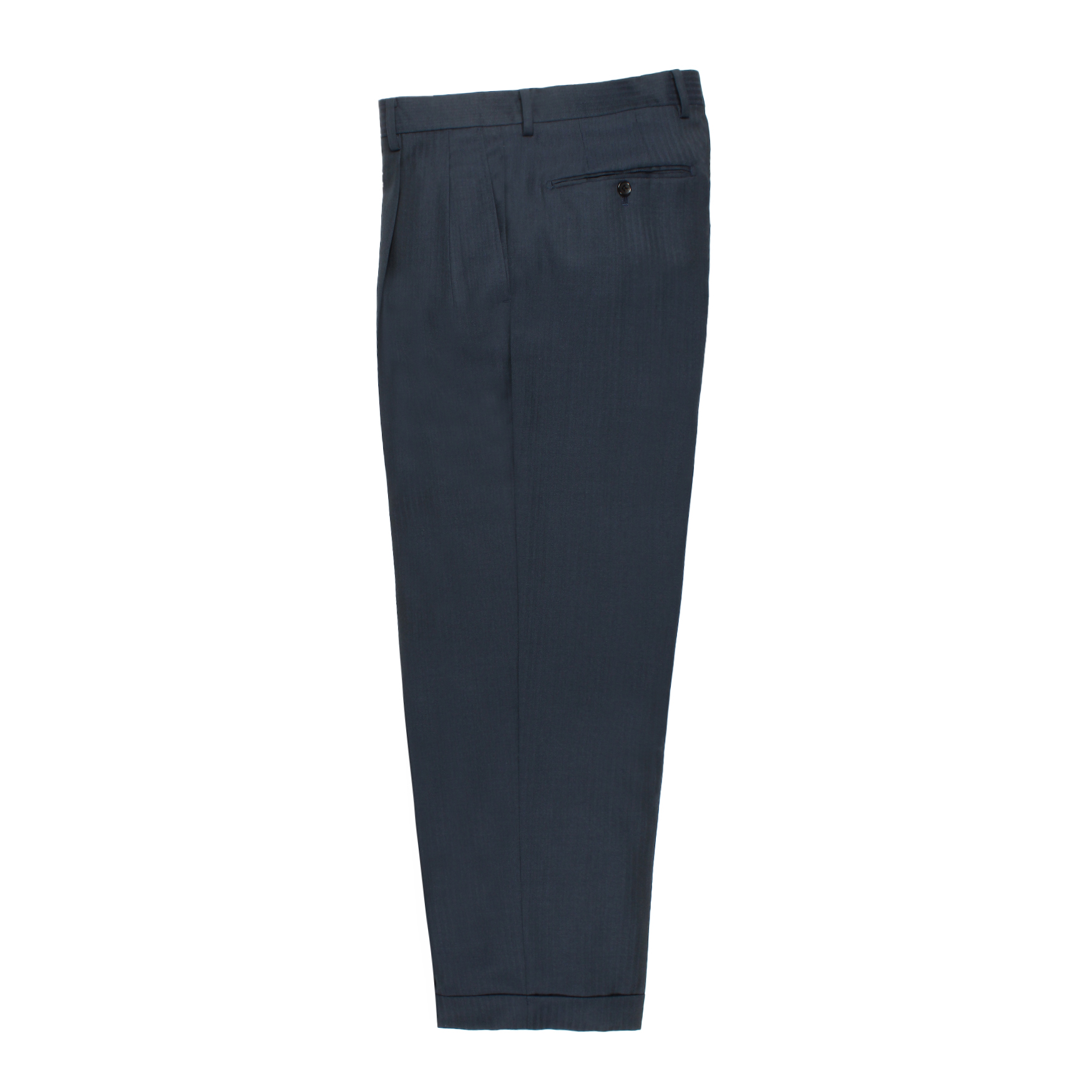 ハイウェストでプリーツ入りのテーパードシルエット。