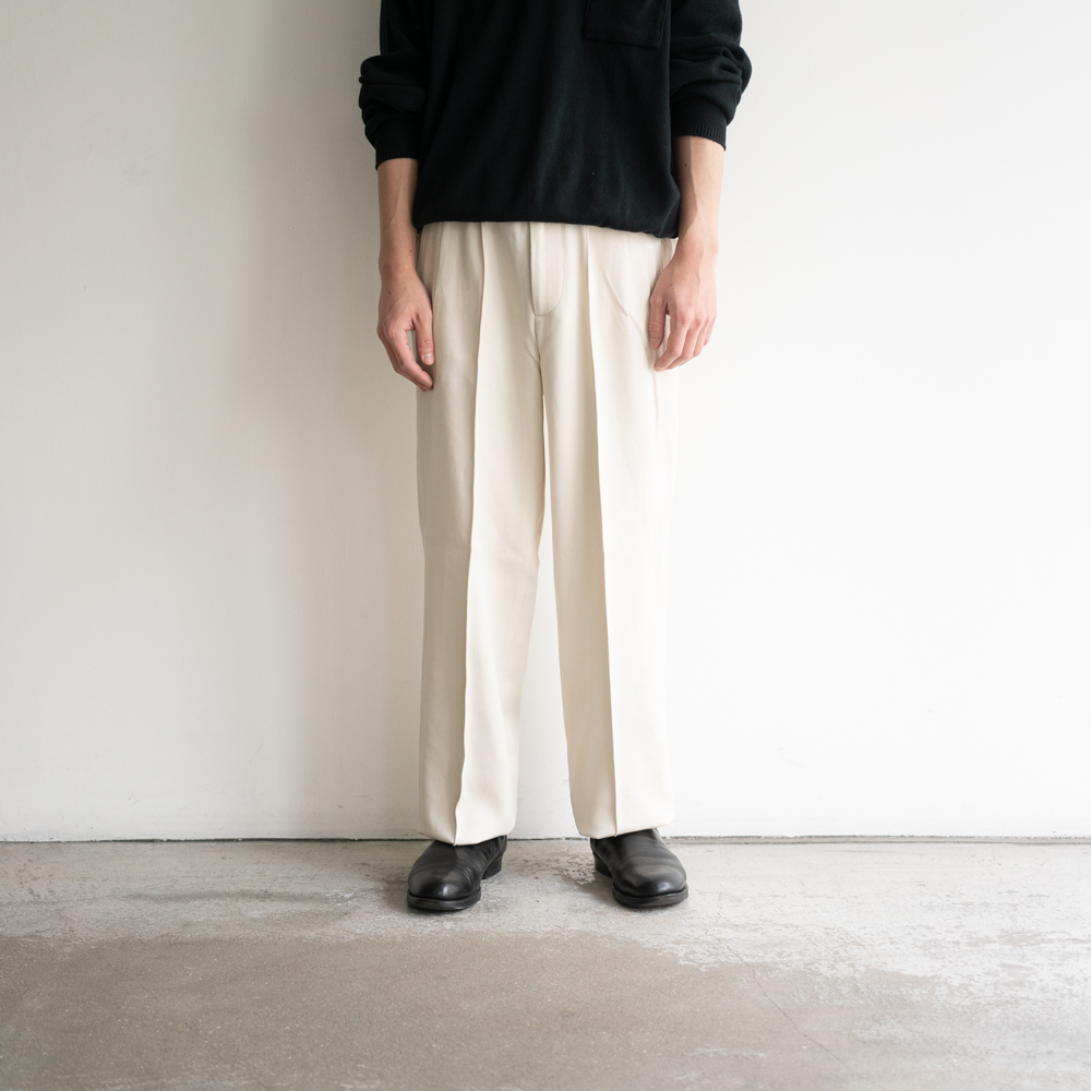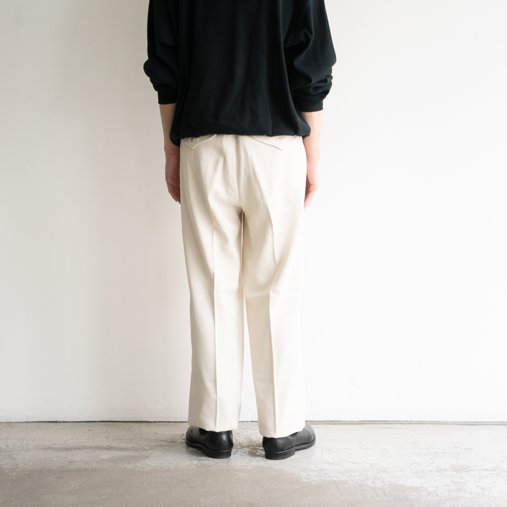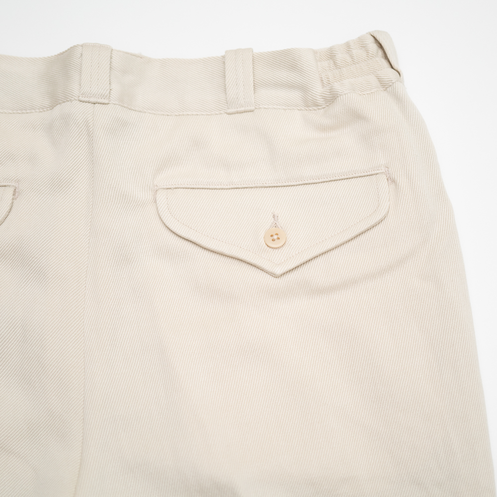 ミッドセンチュリー期のアメリカンアーミーなディテールと、ズドンとしたパイプドステムなワイドフィットシルエットが特徴的な、OLD JOE (オールドジョー) のトラウザー。
