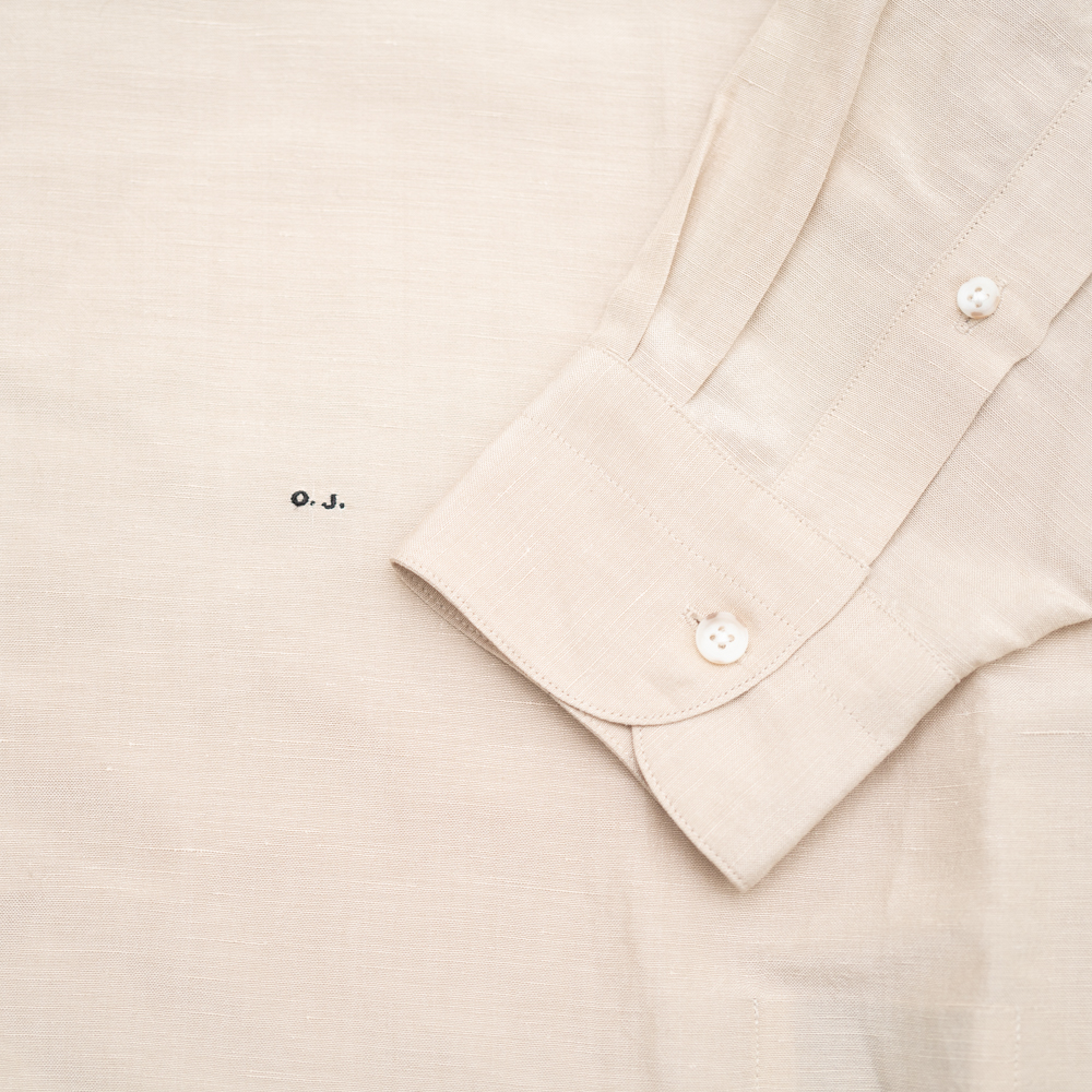 高密度な打ち込みによって繊細さと腰を兼ね備えた、極細番手シルクの経糸とリネンの横糸の平織り。