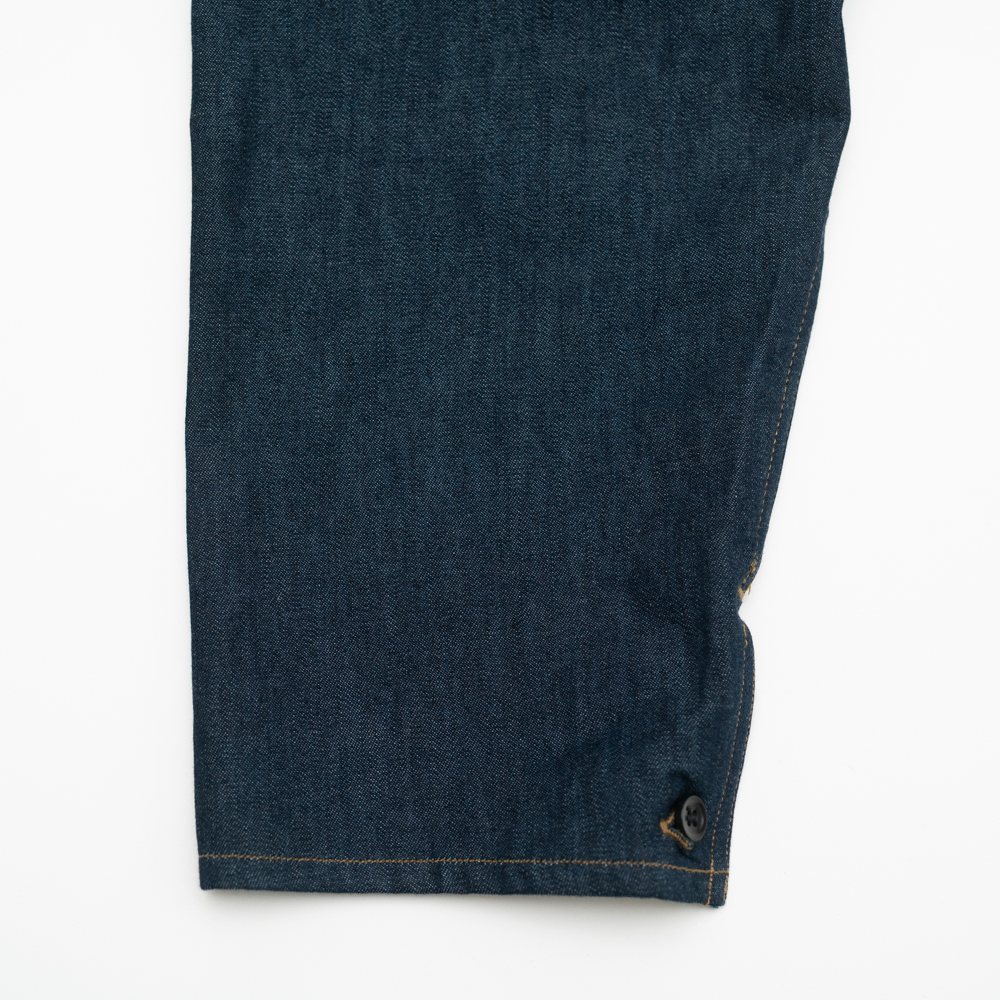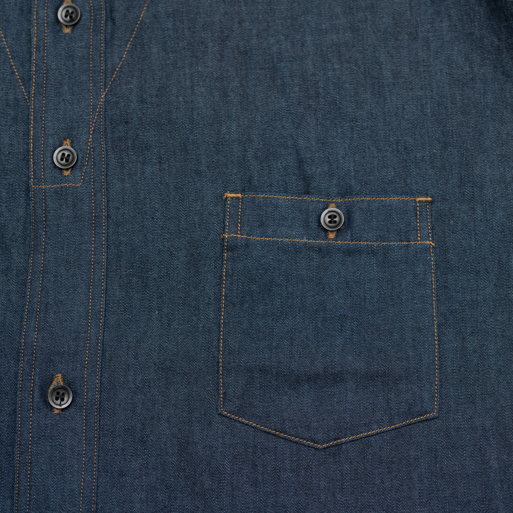 シングルステッチで綺麗に縫わた五角形のダブルポケットは、簡素でいてクラシカル。