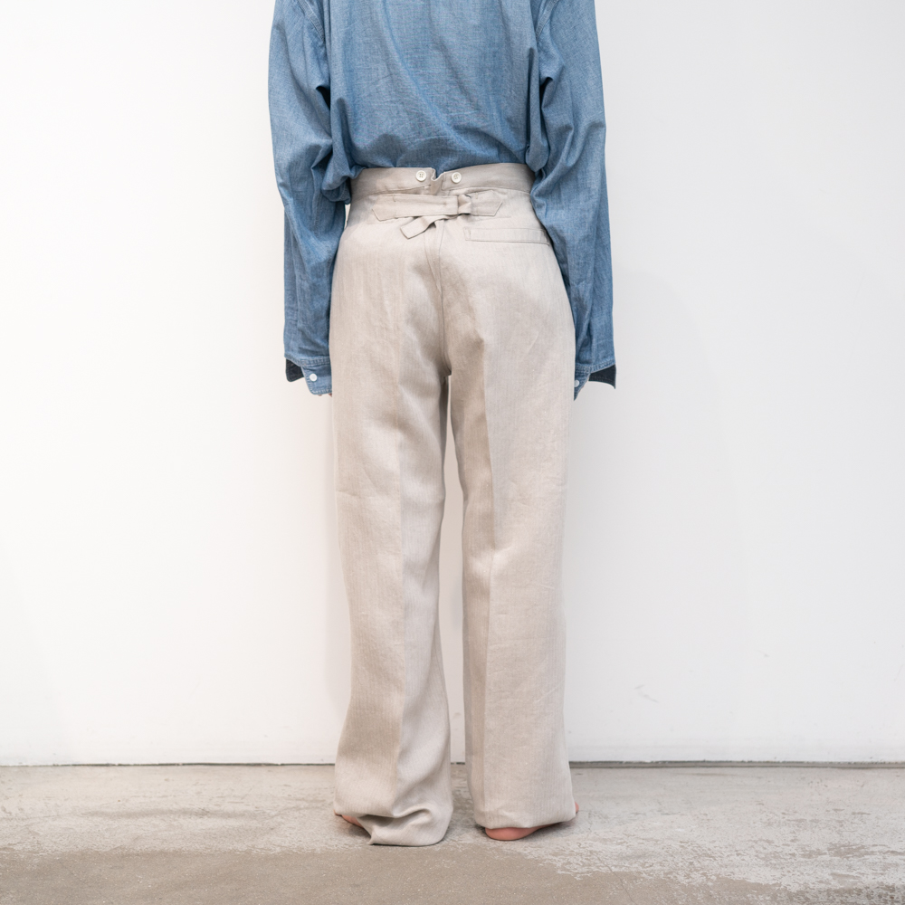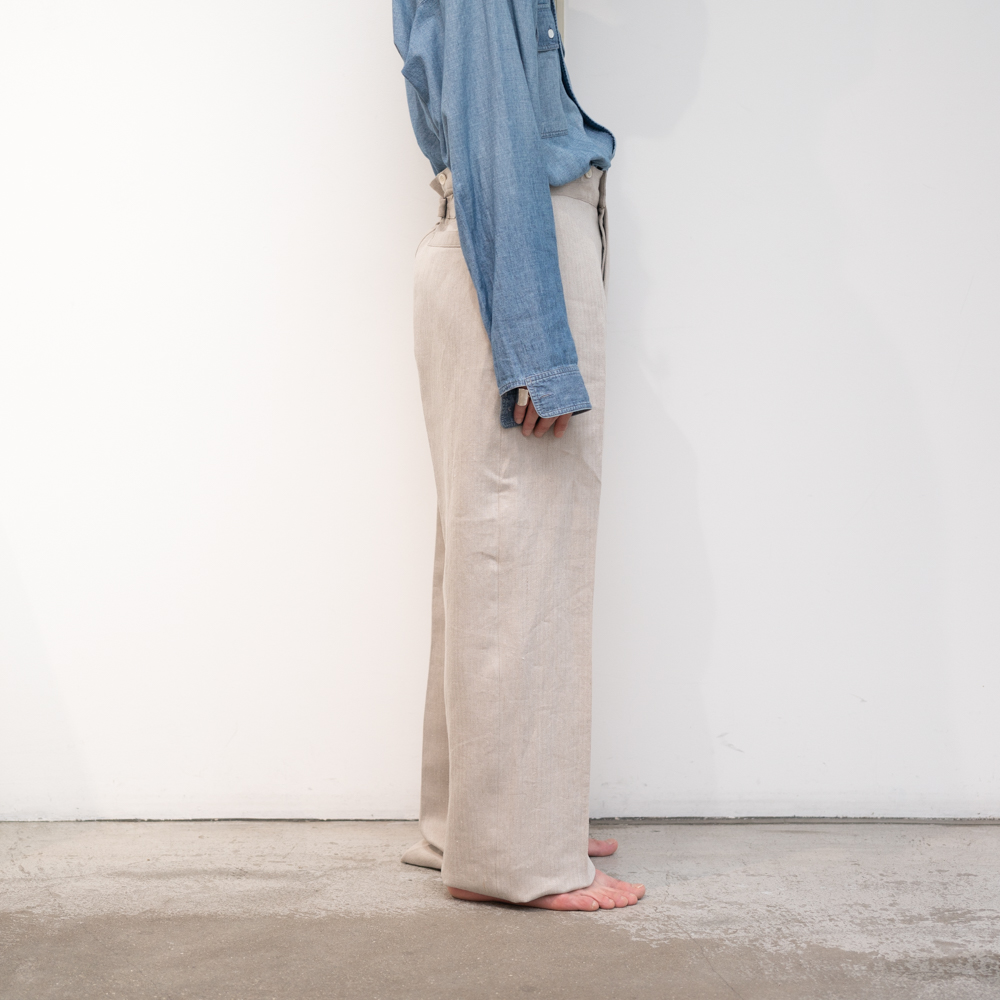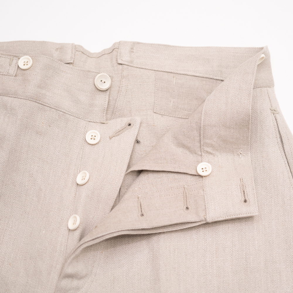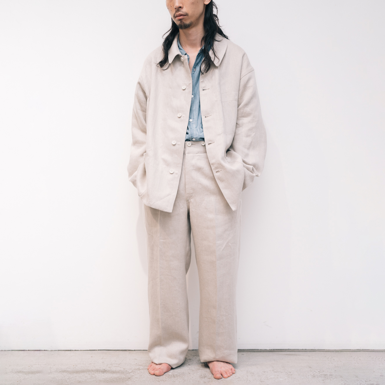 フランス原料のリネンを使用、打ちみ密度を限界まで上げて織ったヘリンボンは、その日の天候や糸の質を考慮して微調整して生産します。