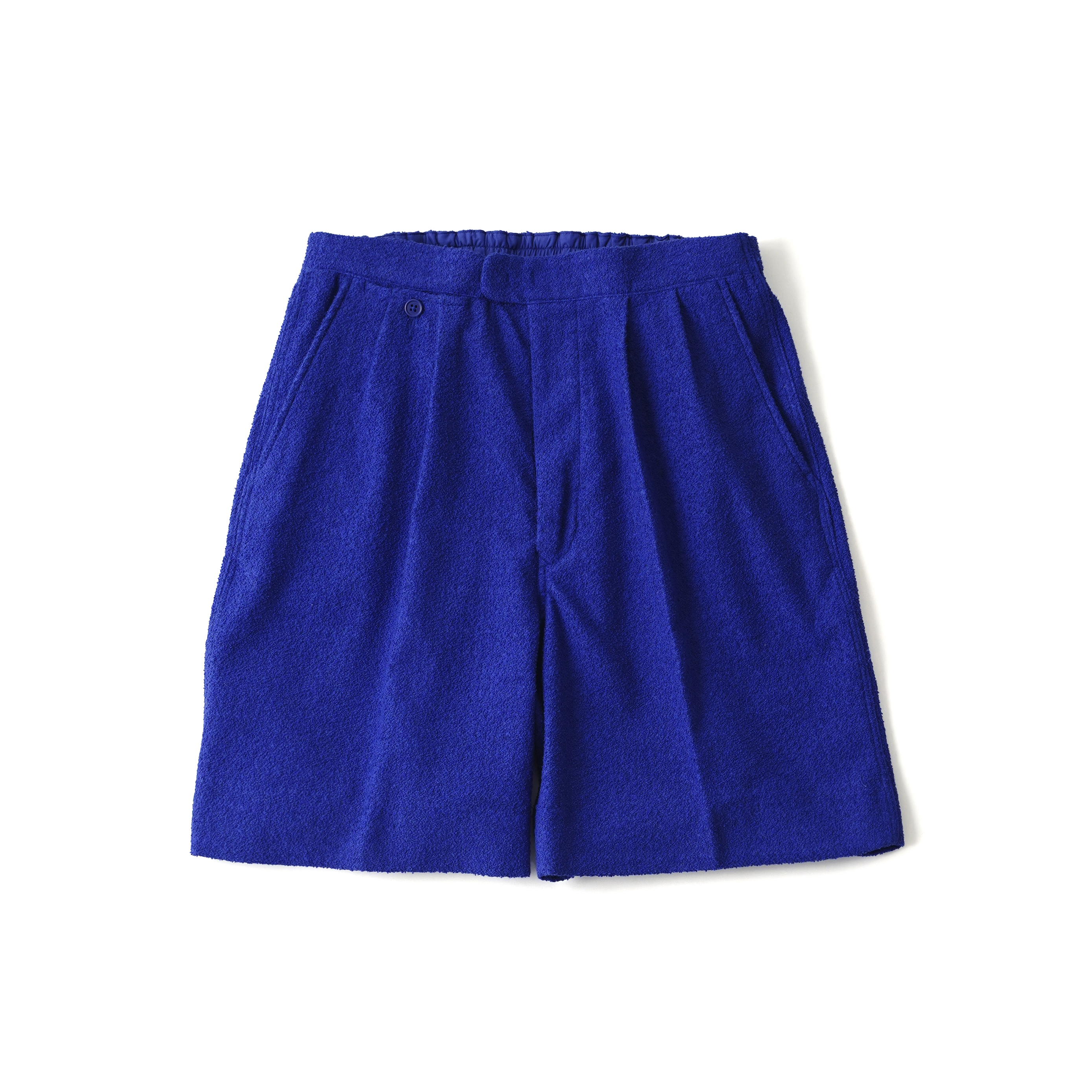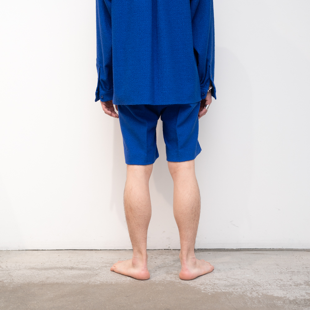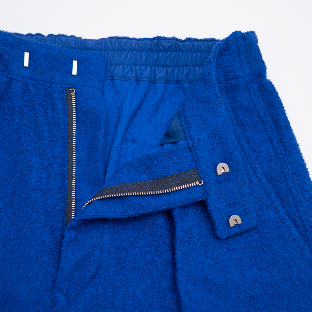 前見頃はプリーツとクリースラインが配してあるのでカジュアルになりすぎず、ベルトレスなのでタックインの際も美しい佇まい。