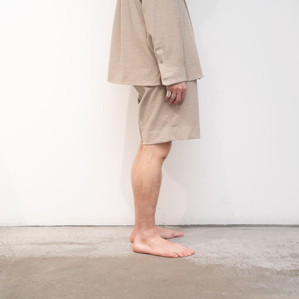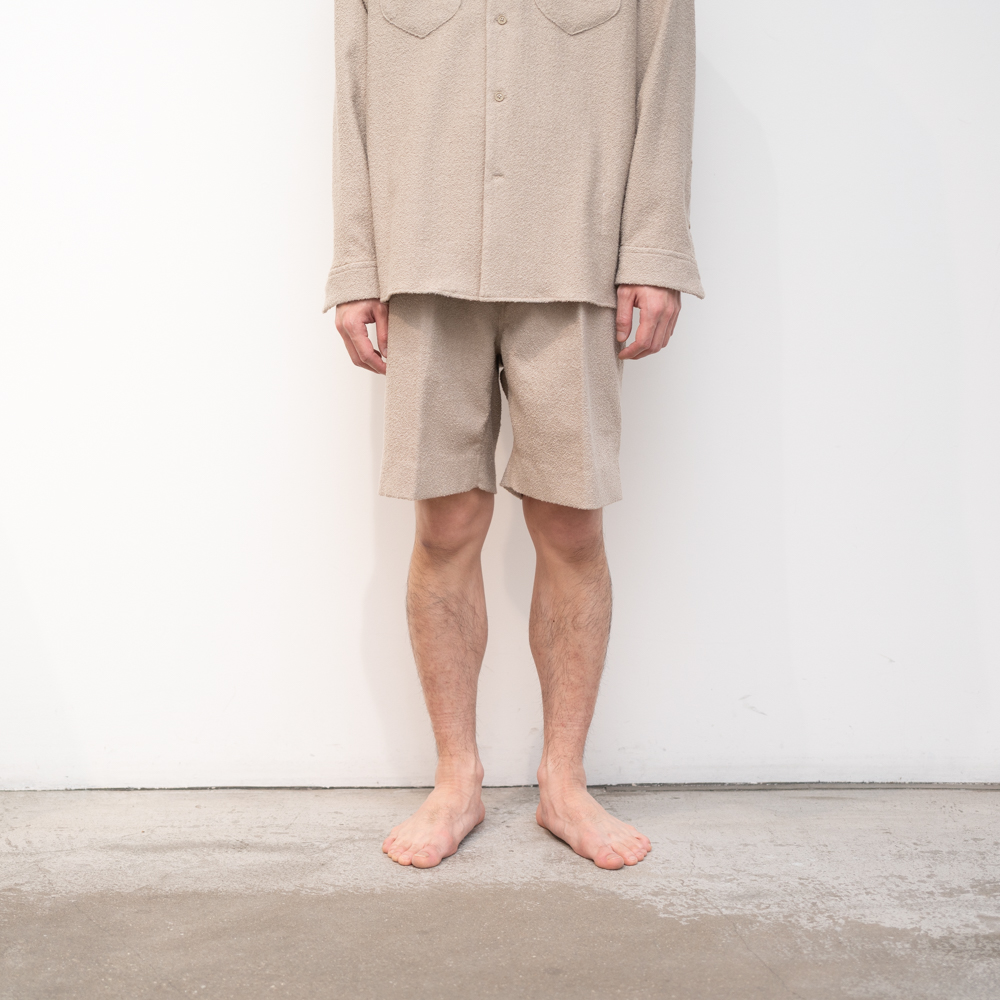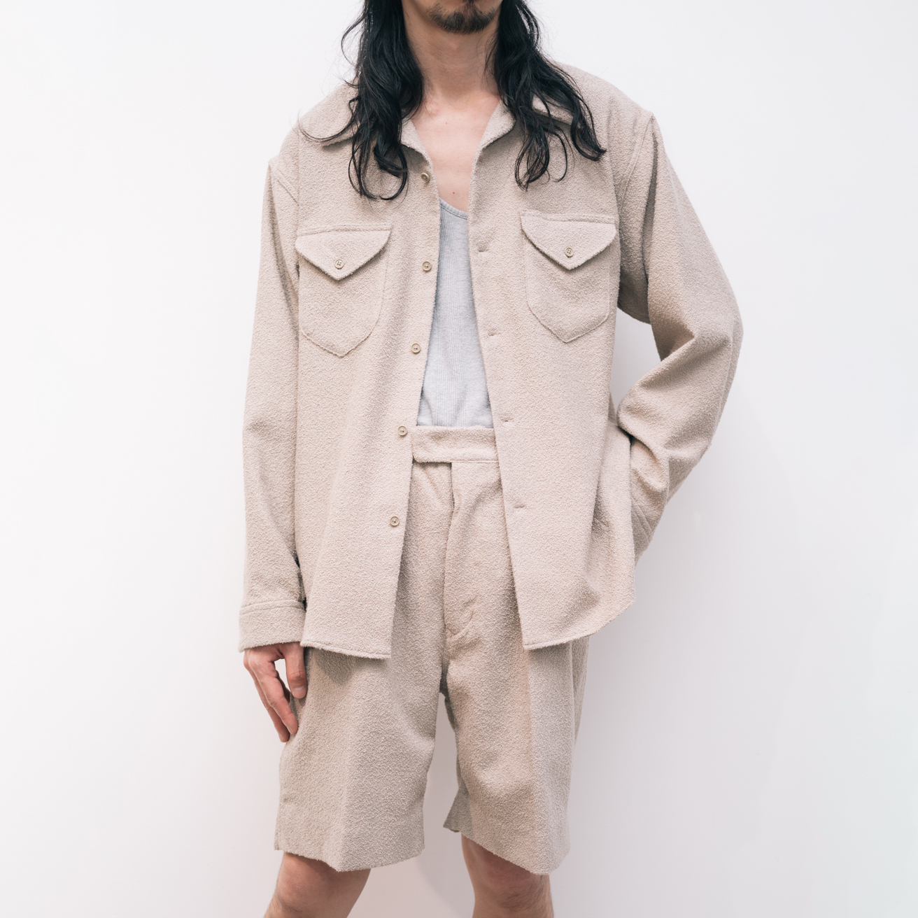 前見頃はプリーツとクリースラインが配してあるのでカジュアルになりすぎず、ベルトレスなのでタックインの際も美しい佇まい。