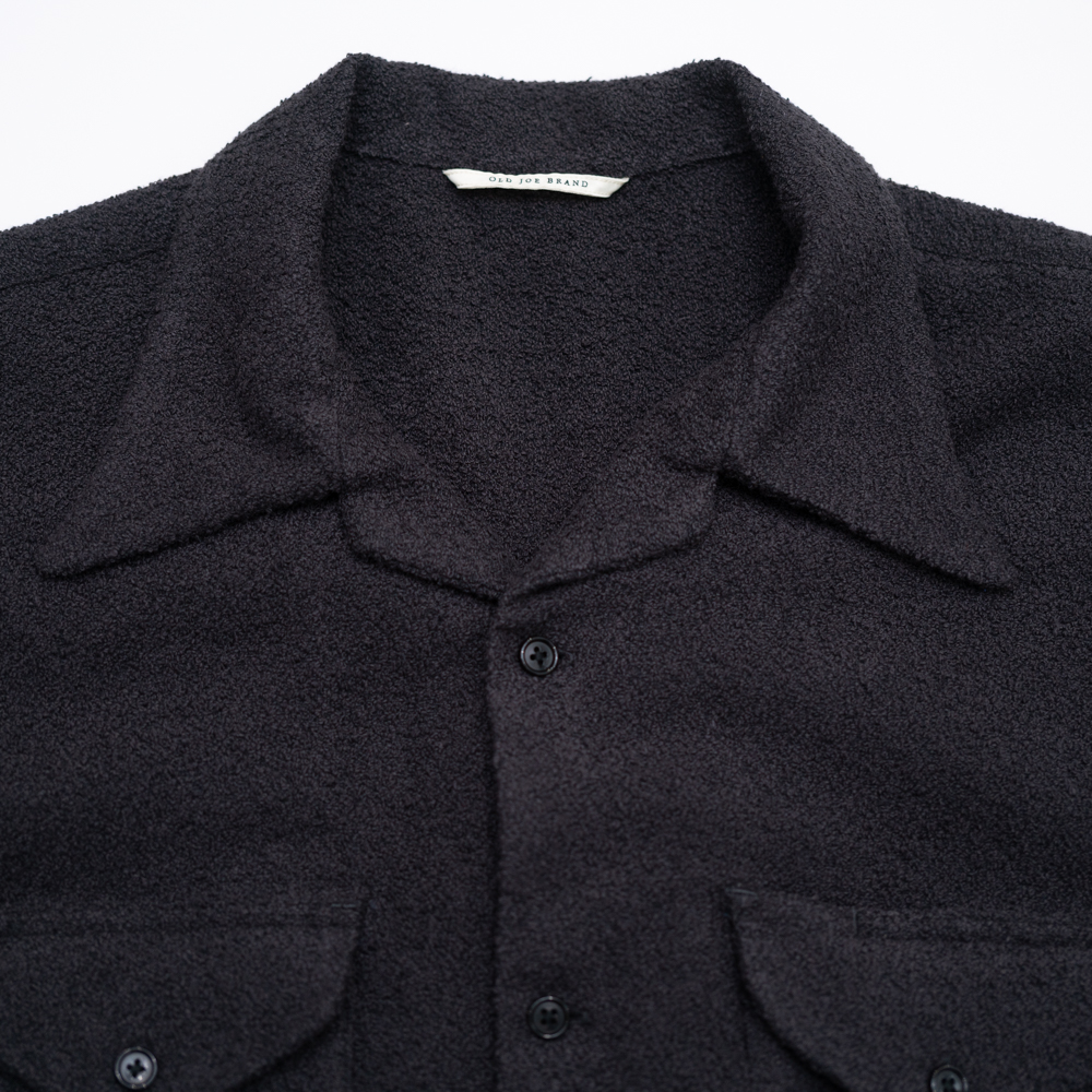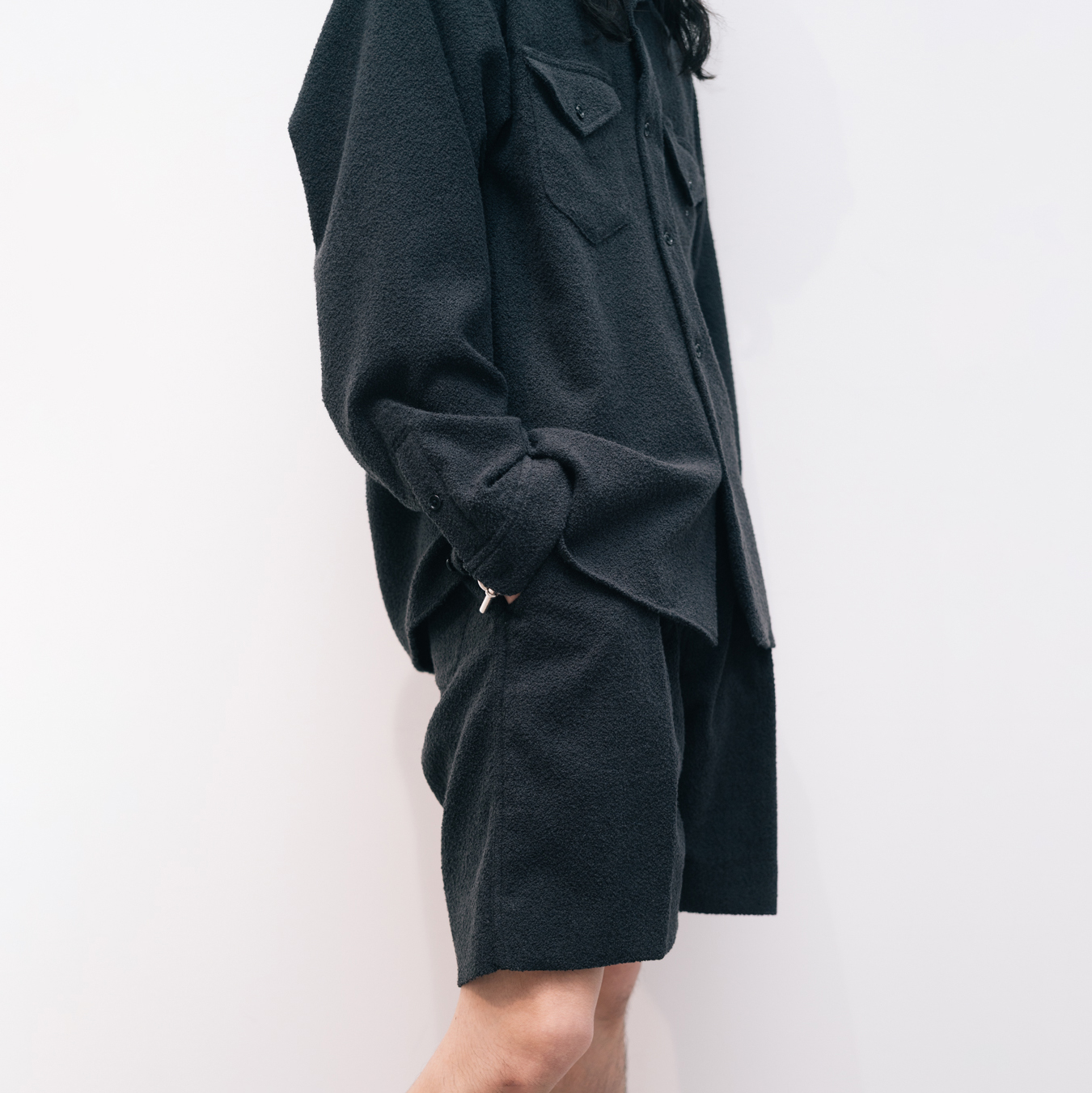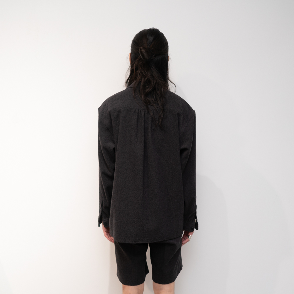1940sのスポーツシャツをイメージしてデザインされたフロントのダブルポケット、ゆったりとした身幅のバランスに、オリジナル染色したパイルクロスで制作。