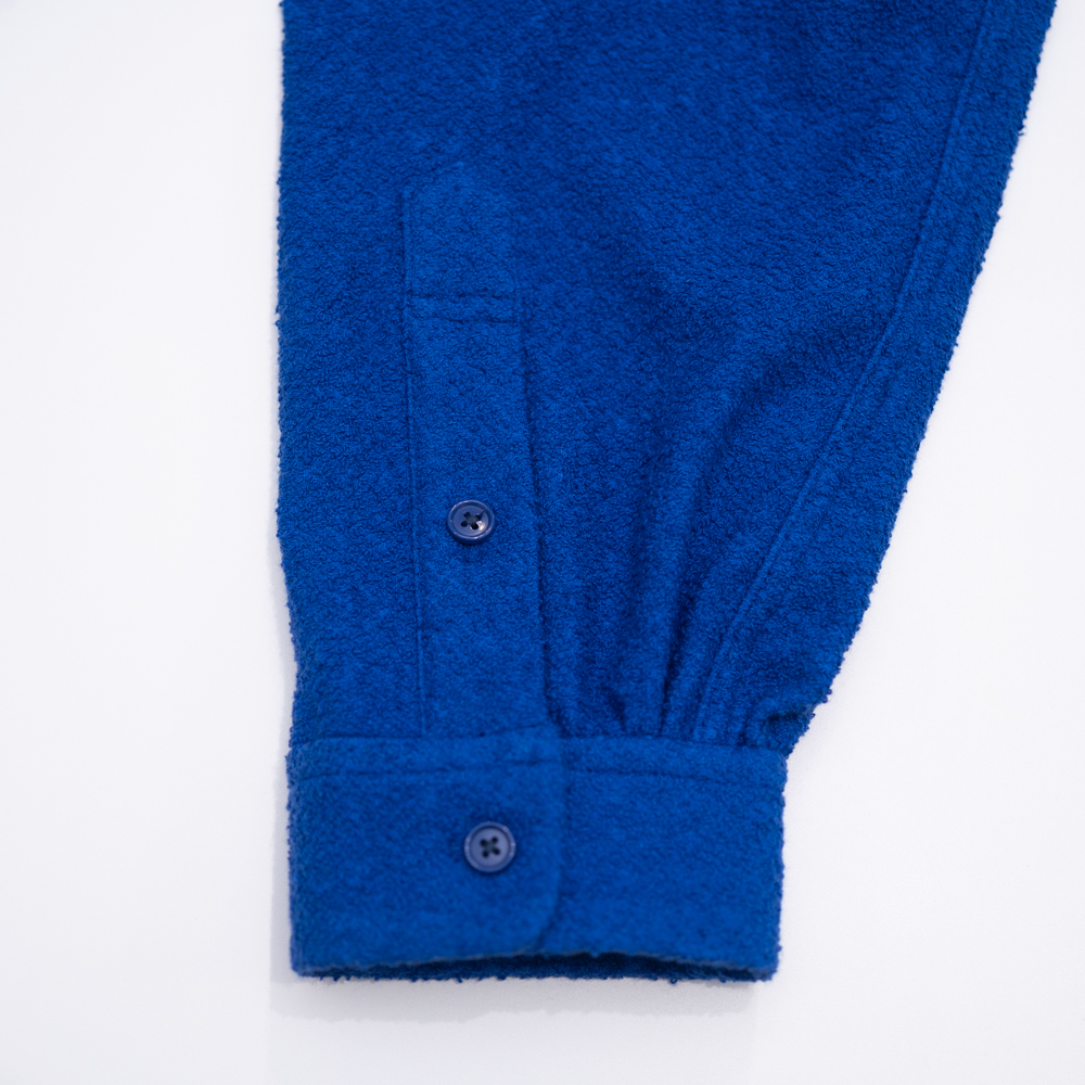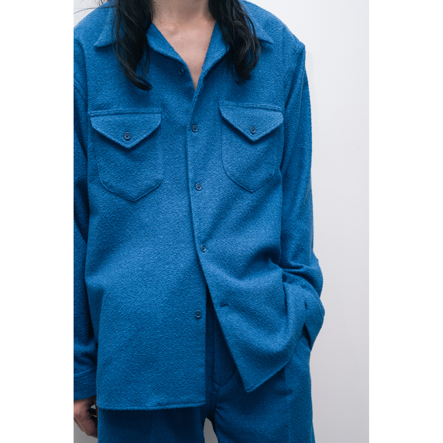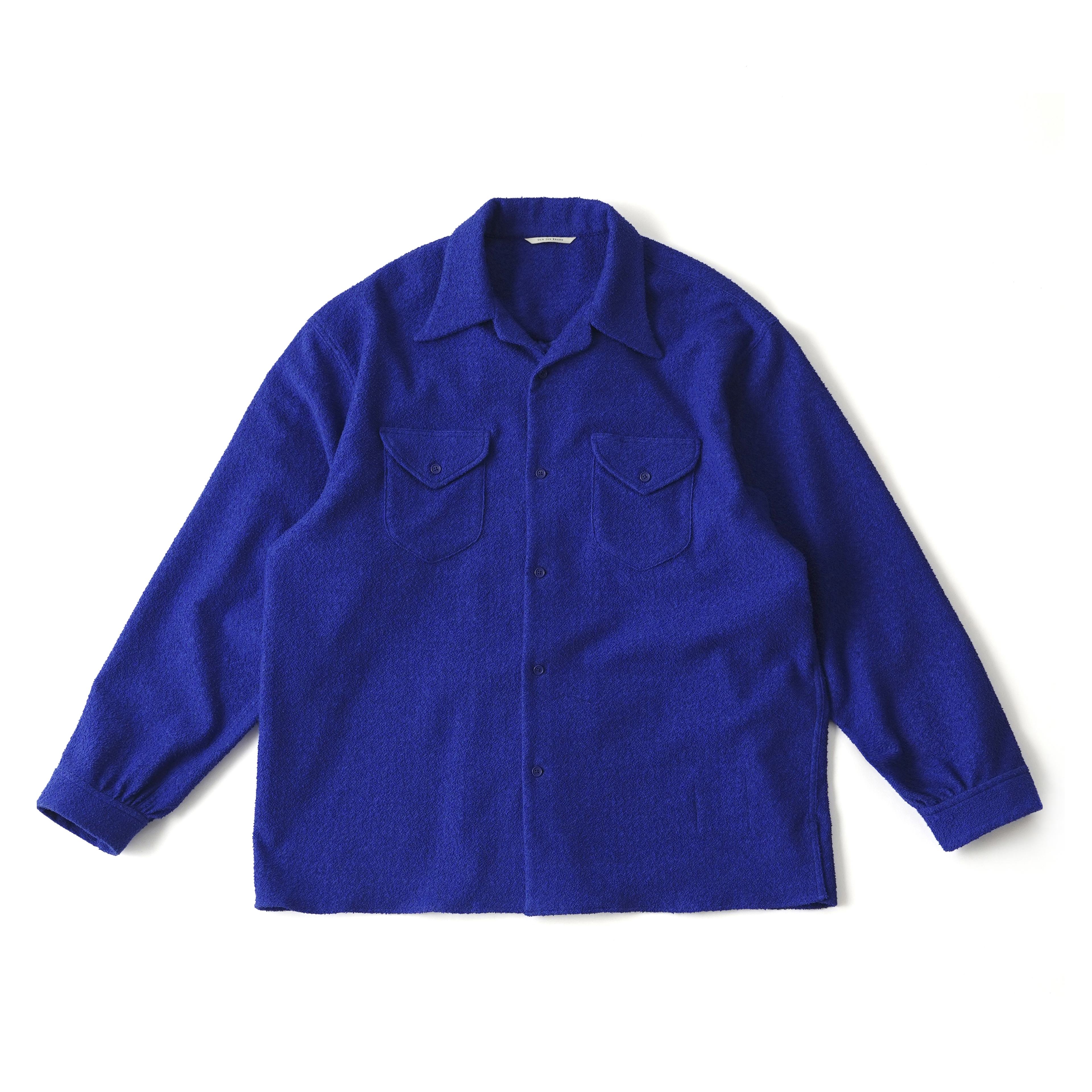 1940sのスポーツシャツをイメージしてデザインされたフロントのダブルポケット、ゆったりとした身幅のバランスに、オリジナル染色したパイルクロスで制作。