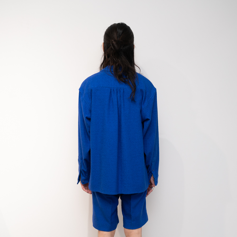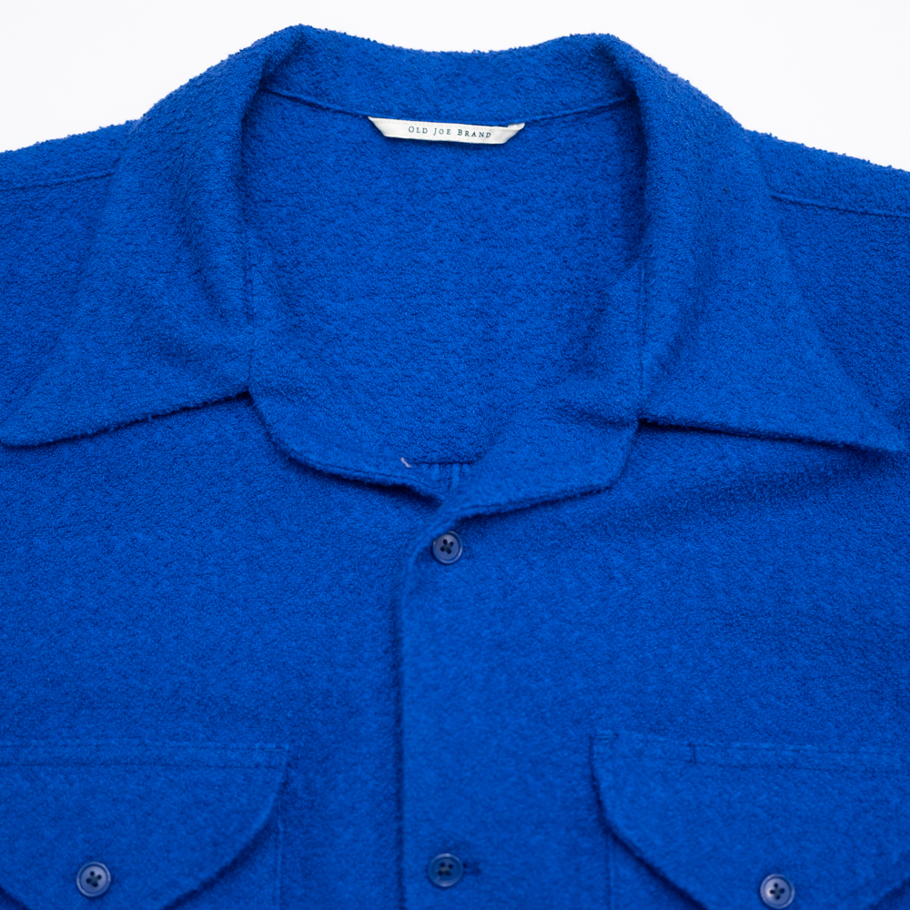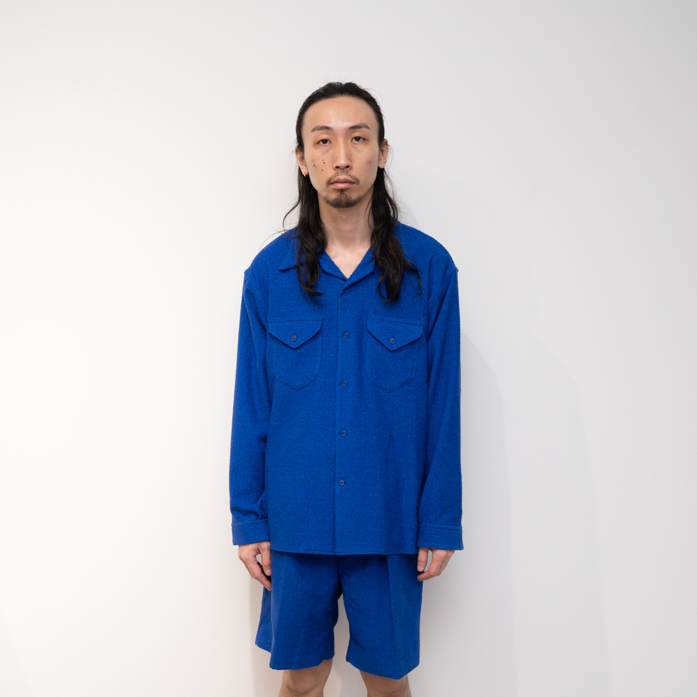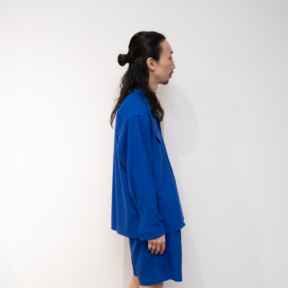 1940sのスポーツシャツをイメージしてデザインされたフロントのダブルポケット、ゆったりとした身幅のバランスに、オリジナル染色したパイルクロスで制作。