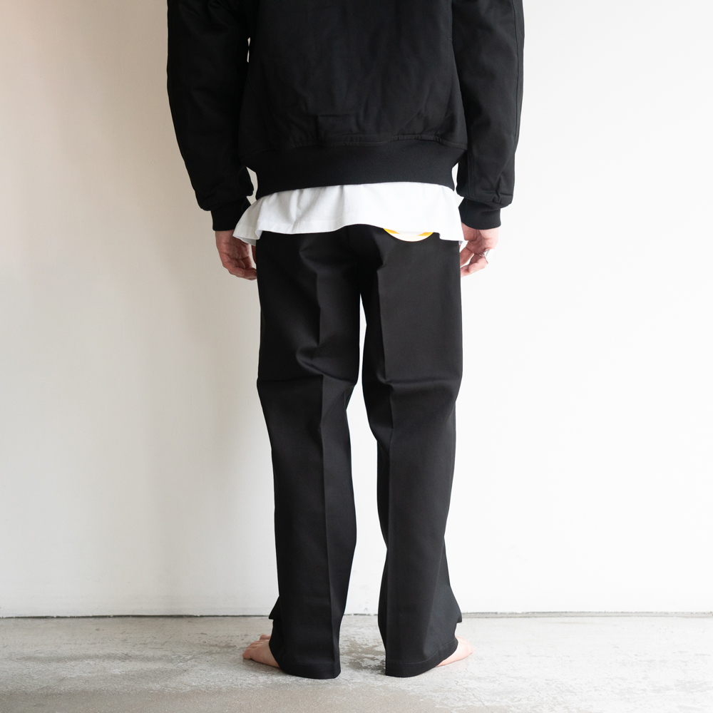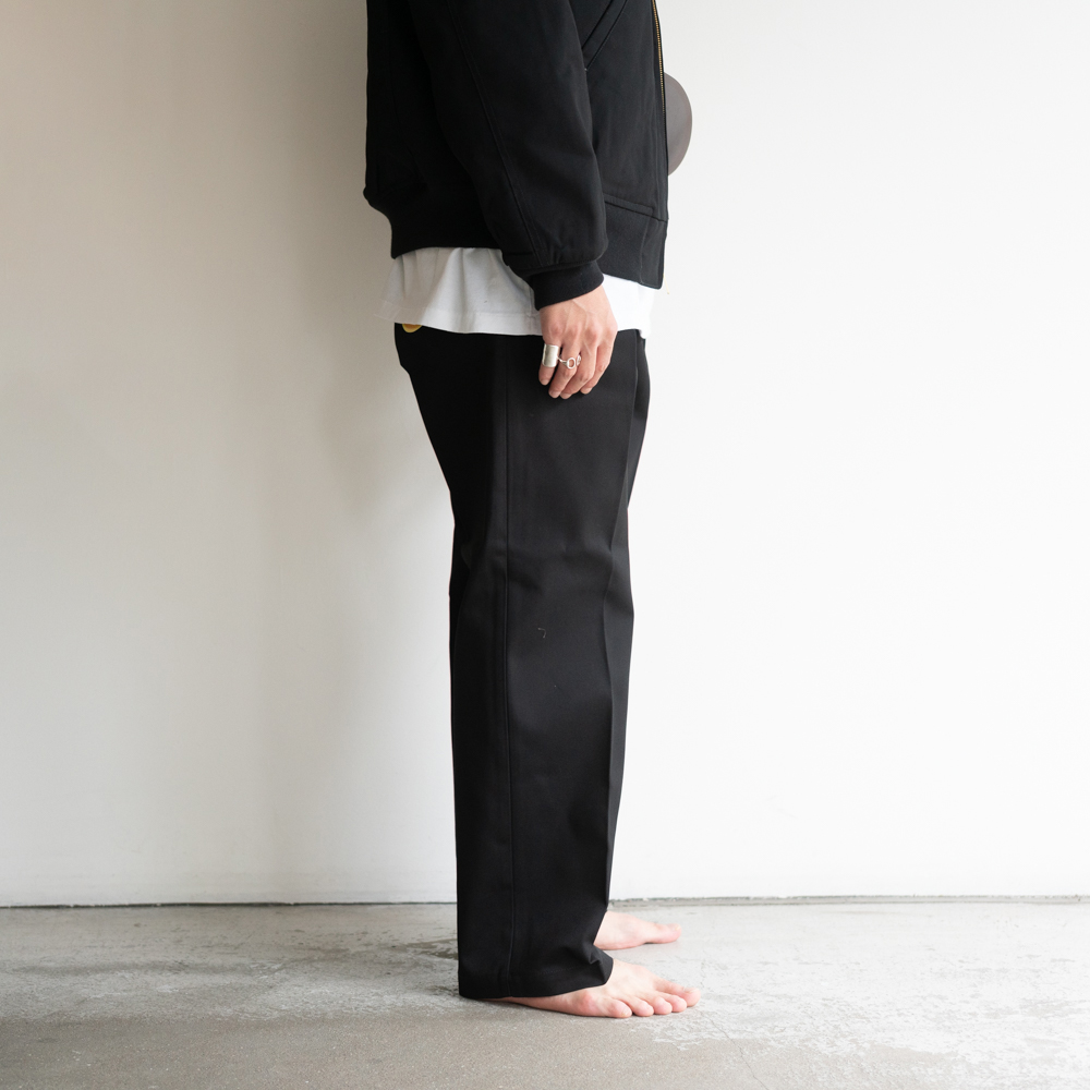 タフでハリのあるDICKIESのポリエステル/コットンを使用した、プリーツ入りのワイドなトラウザーです。