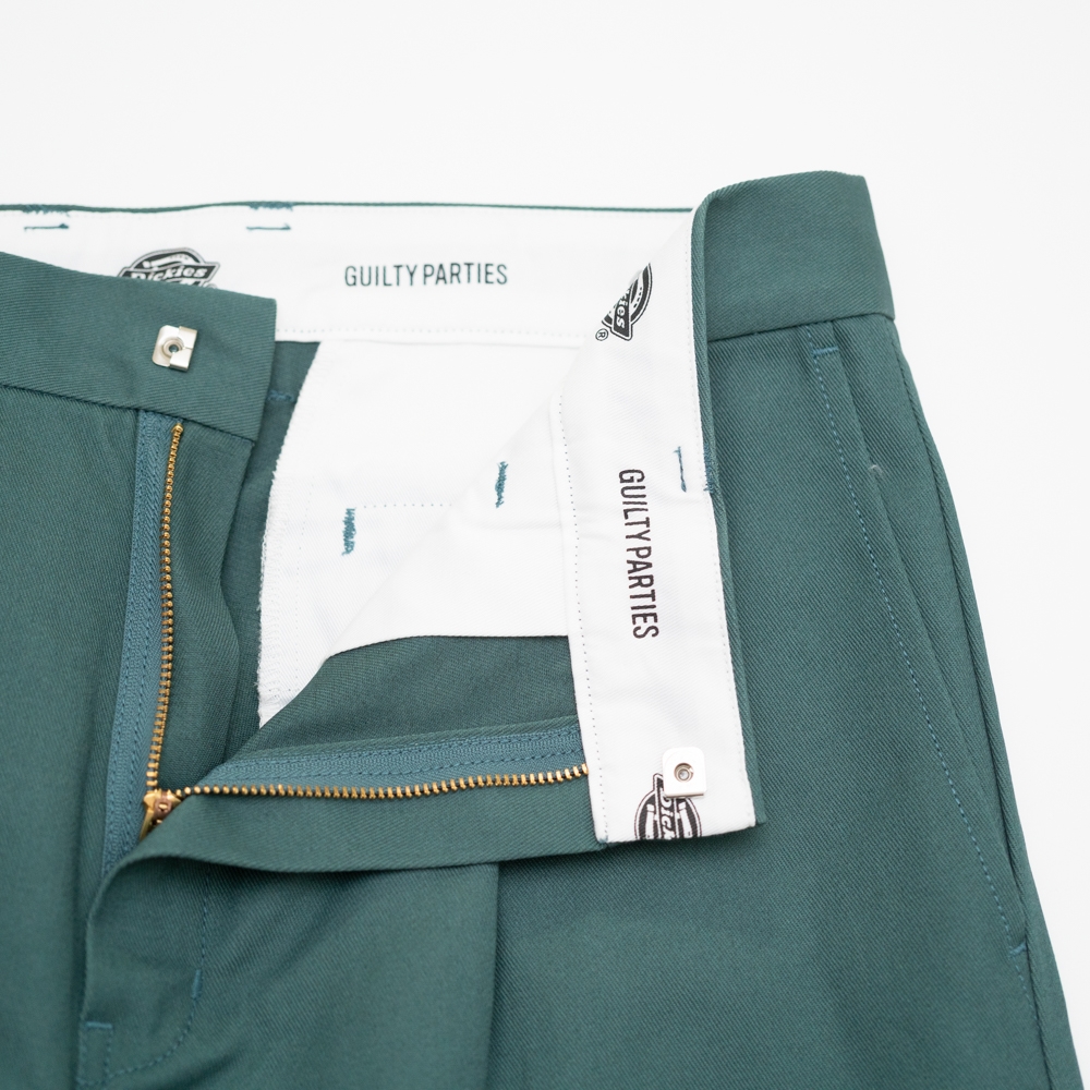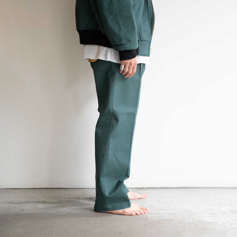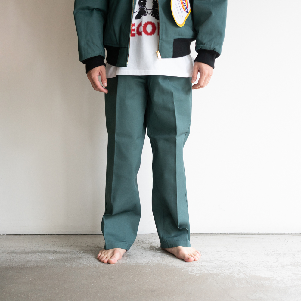 タフでハリのあるDICKIESのポリエステル/コットンを使用した、プリーツ入りのワイドなトラウザーです。