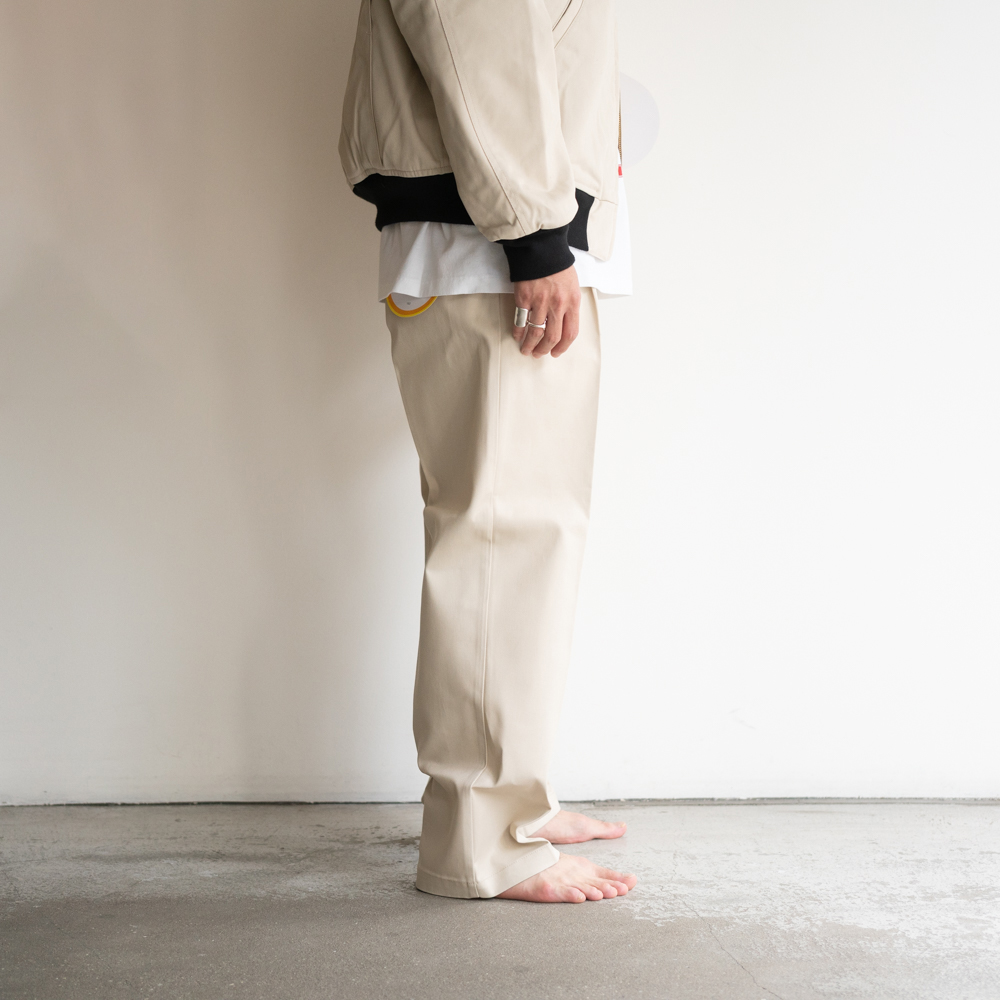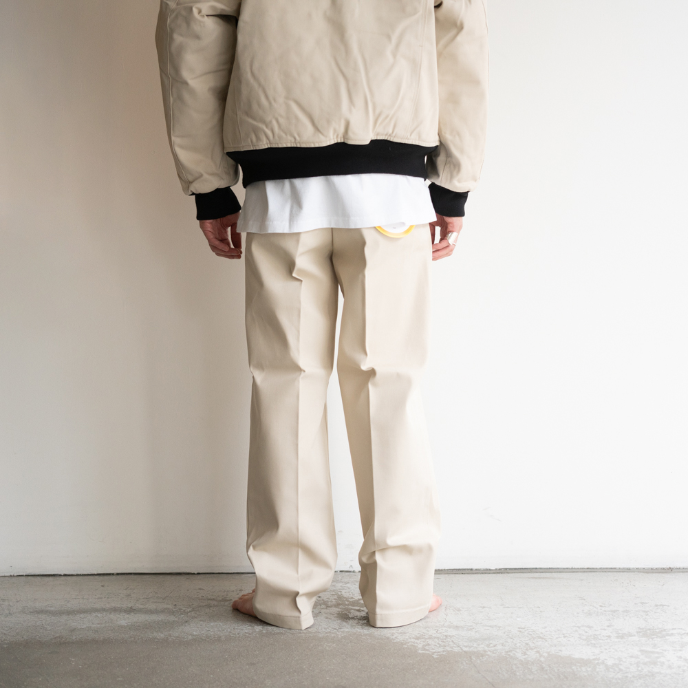 タフでハリのあるDICKIESのポリエステル/コットンを使用した、プリーツ入りのワイドなトラウザーです。