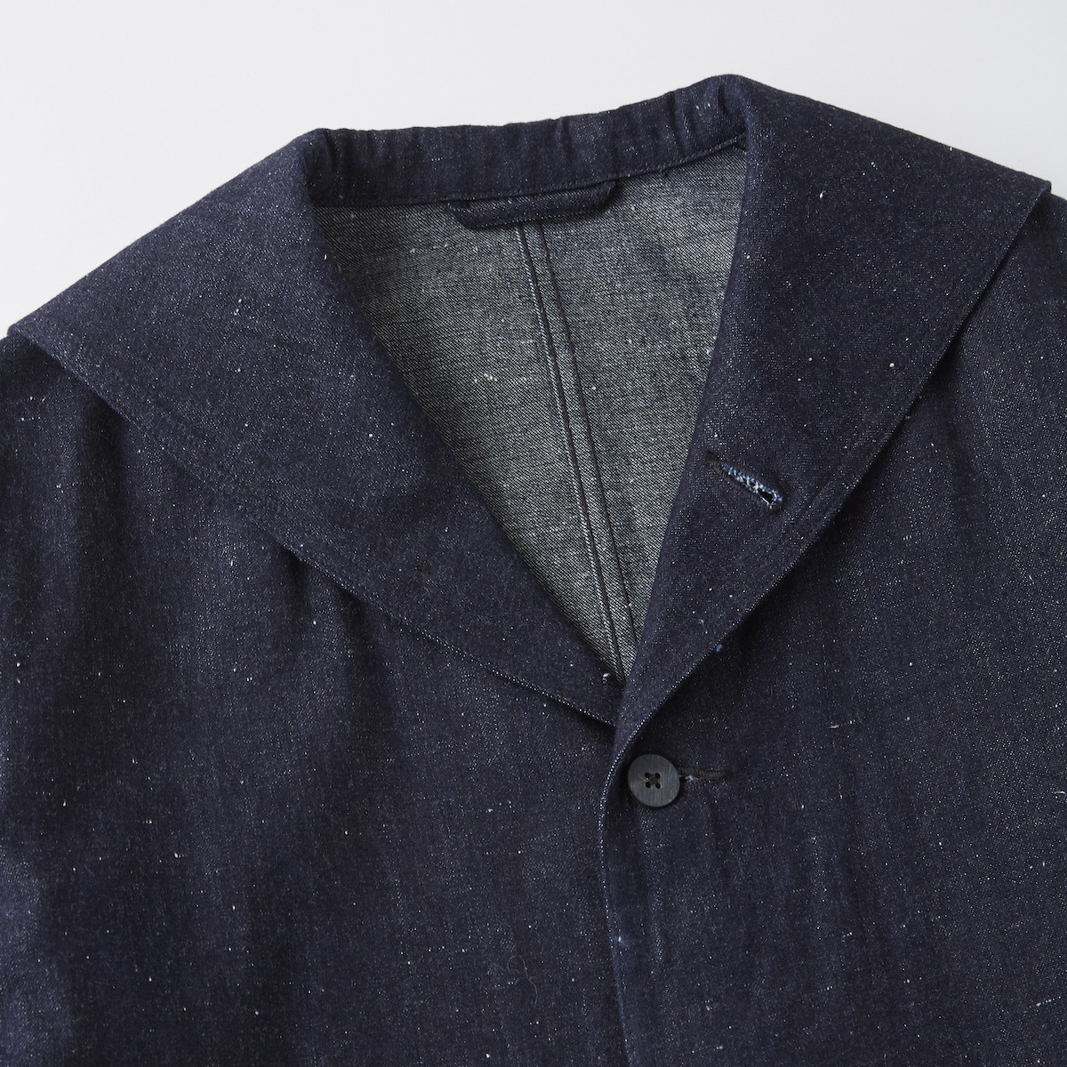 小振りなセーラーカラーが特徴的なカバーオールジャケット。