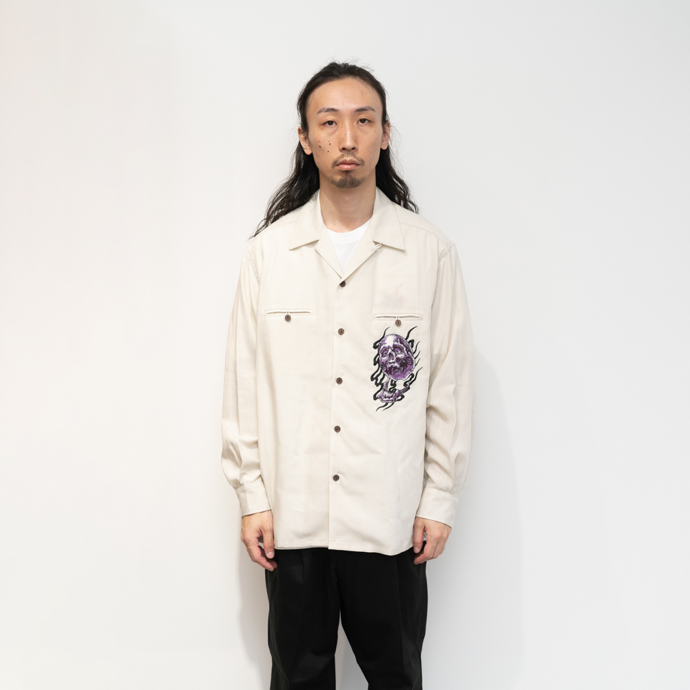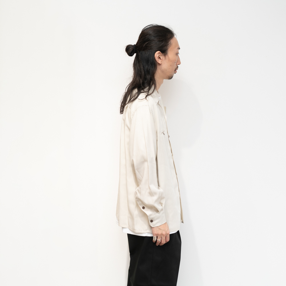 シンプルでゆったりとしたフィッティングラインのオープンシャツ。