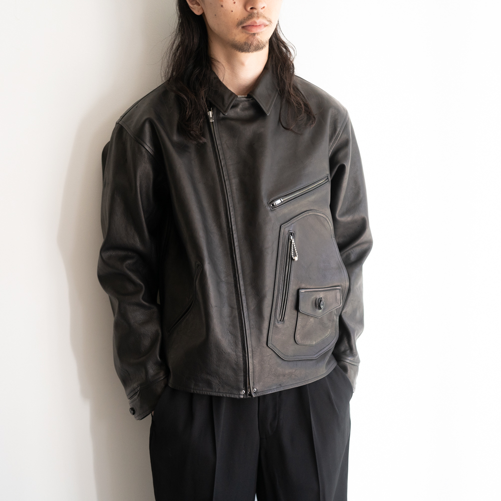 ざらつきのある手触りと色むらのある色調の、ラフでワイルドな仕上げが特徴のホースレザー。ソフトホース系よりも凹凸感をあえて残しており、色合いや質感が一着ずつ異なる一点物となります。