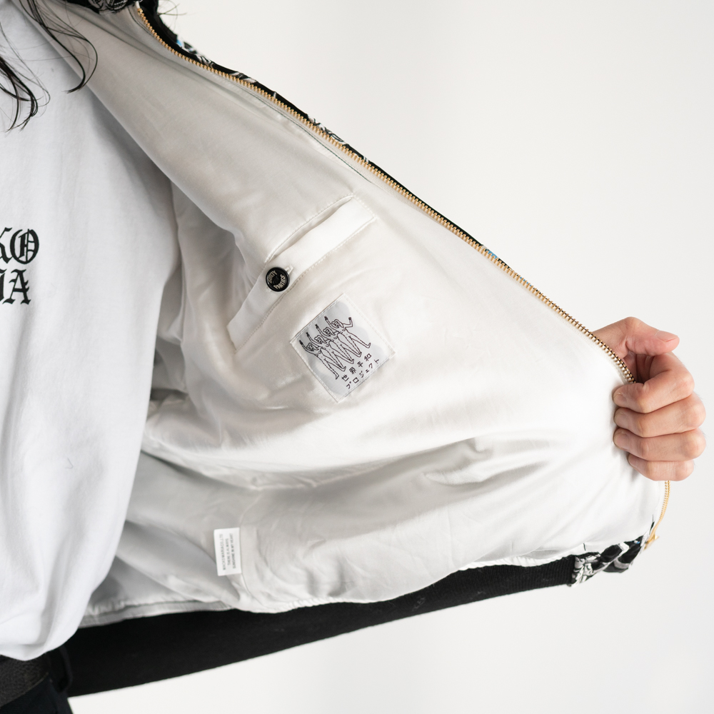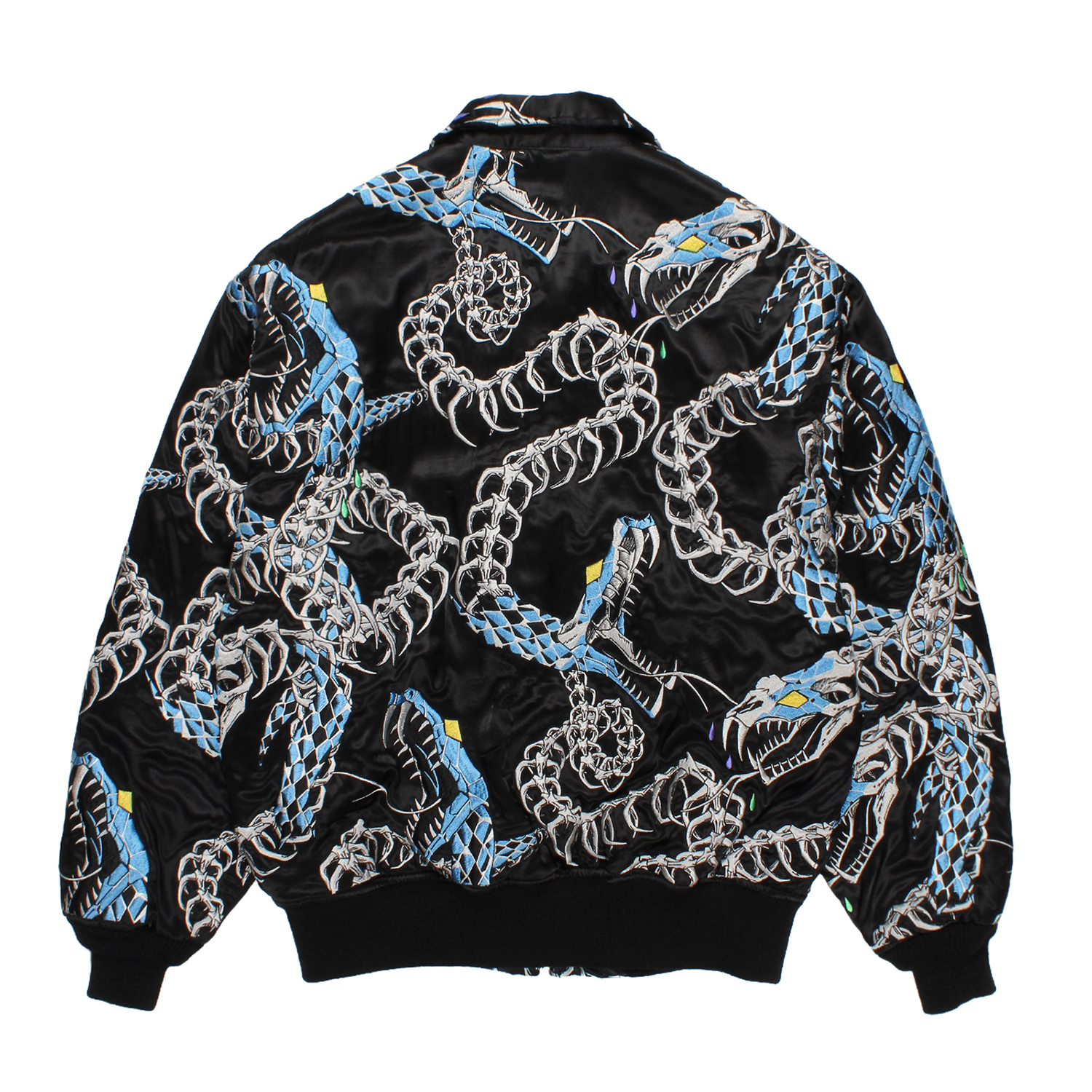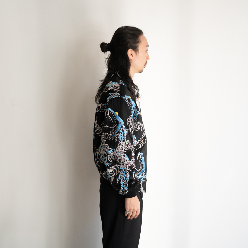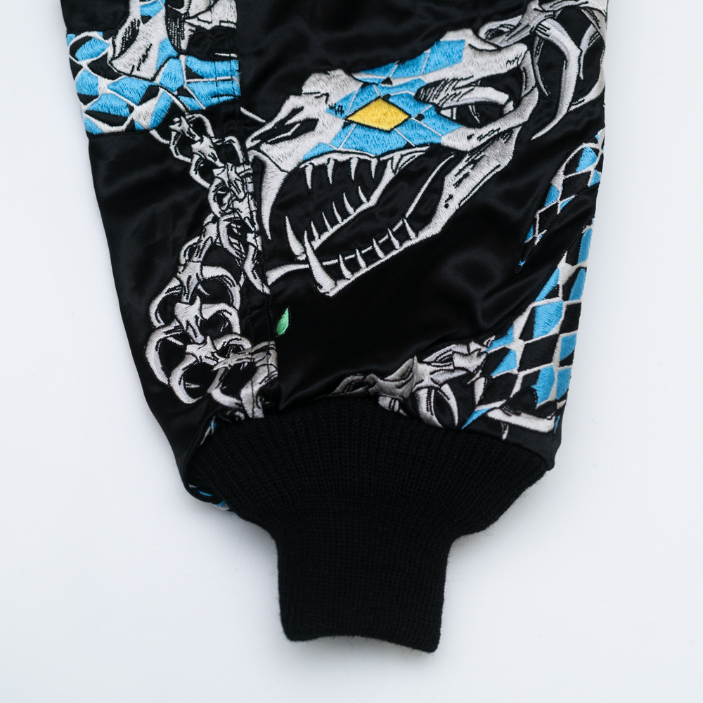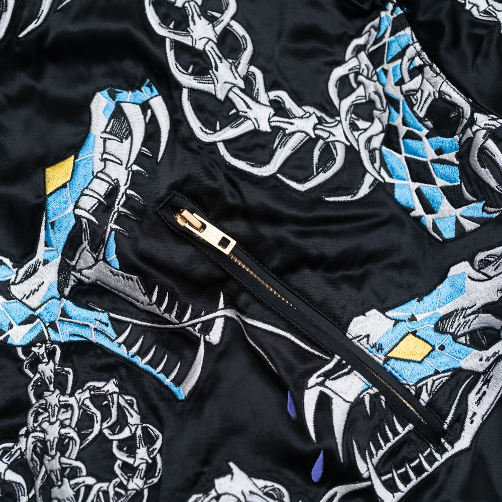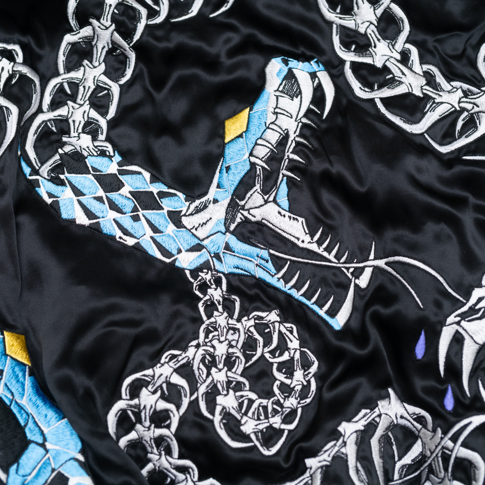 蛇の総柄を全面に刺繍で表現しています。