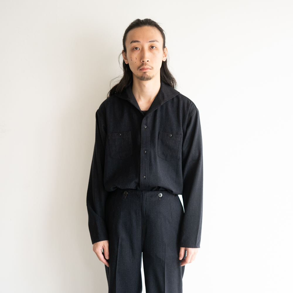 1920〜30年代頃にはポピュラーだったと思われるキャンプカラーと言う襟のデザインが一際目を引くシャツ。