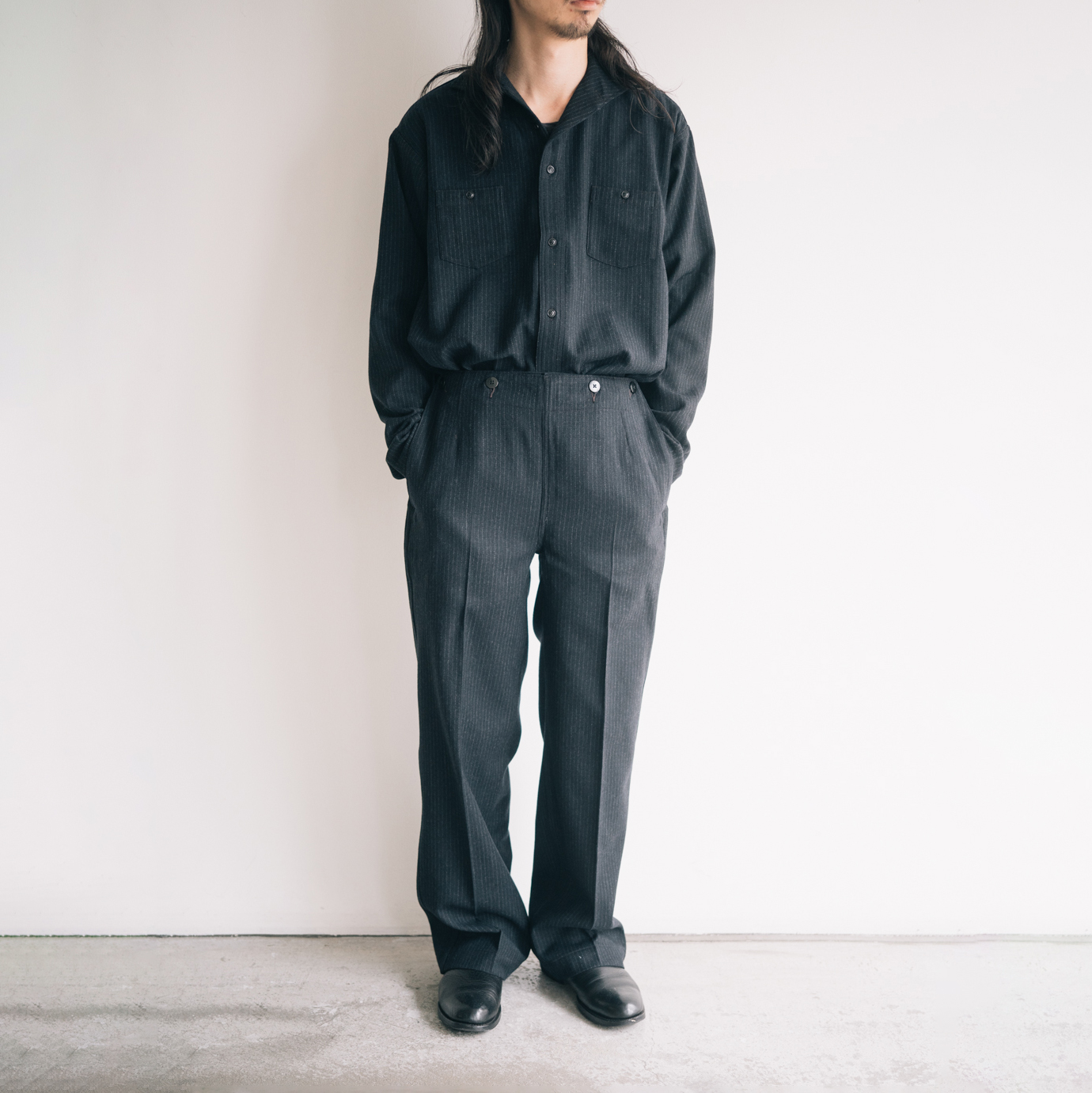 五角形のダブルポケットにウールフランネルを用い、仕立ての良さを感じさせるワークウェアはクラシカルな印象。