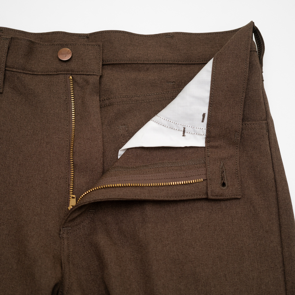 カウボーイのドレスウェアとして開発した「WRANCHER」をベースに、ワイドにアレンジされたオリジナルシルエットで製作したトラウザー。