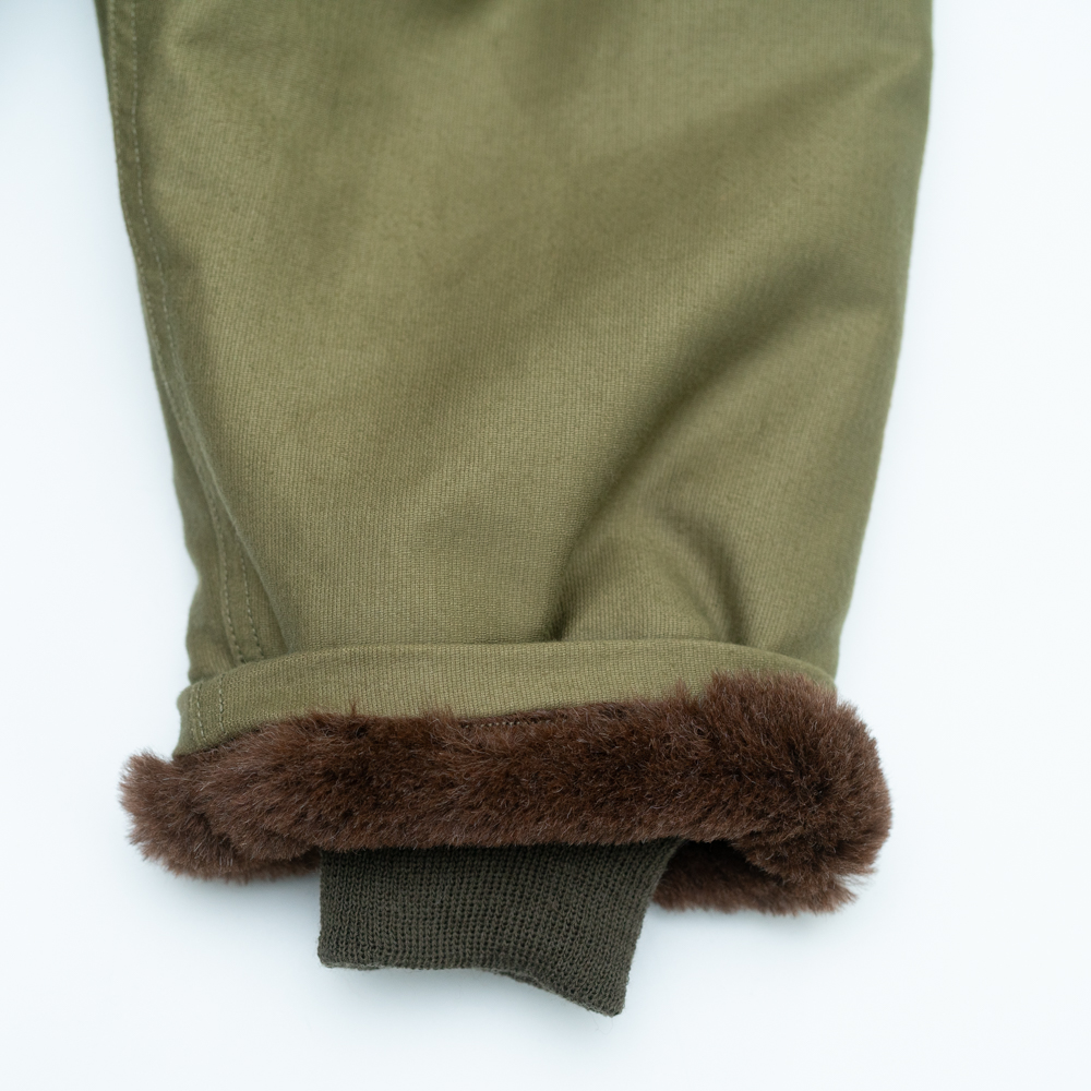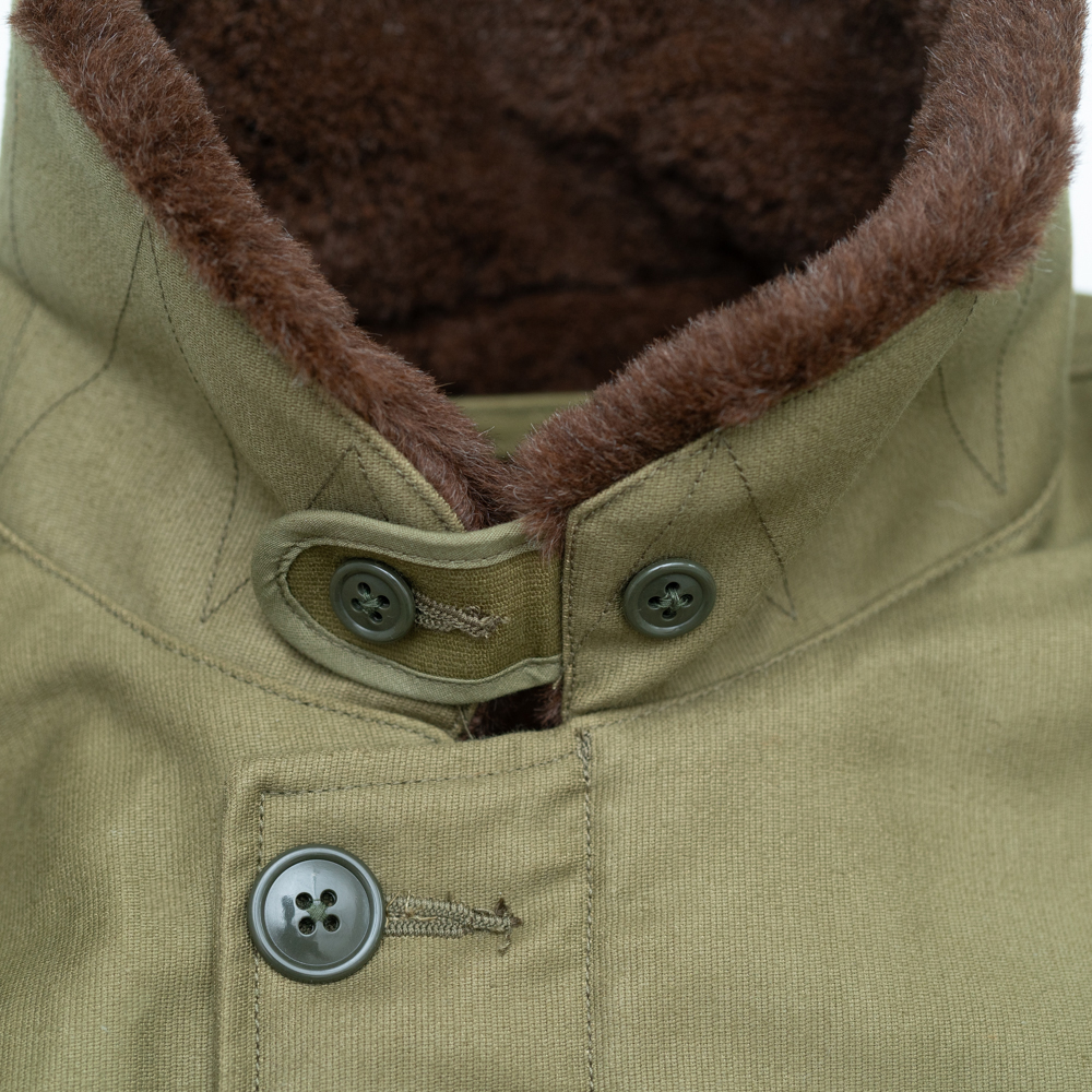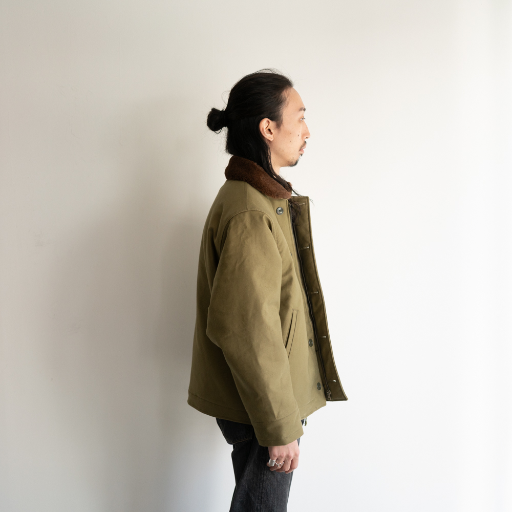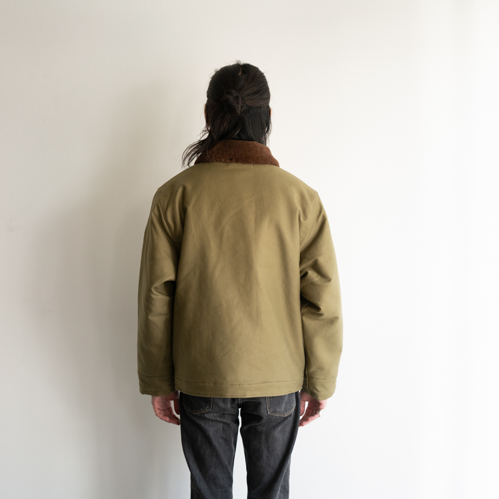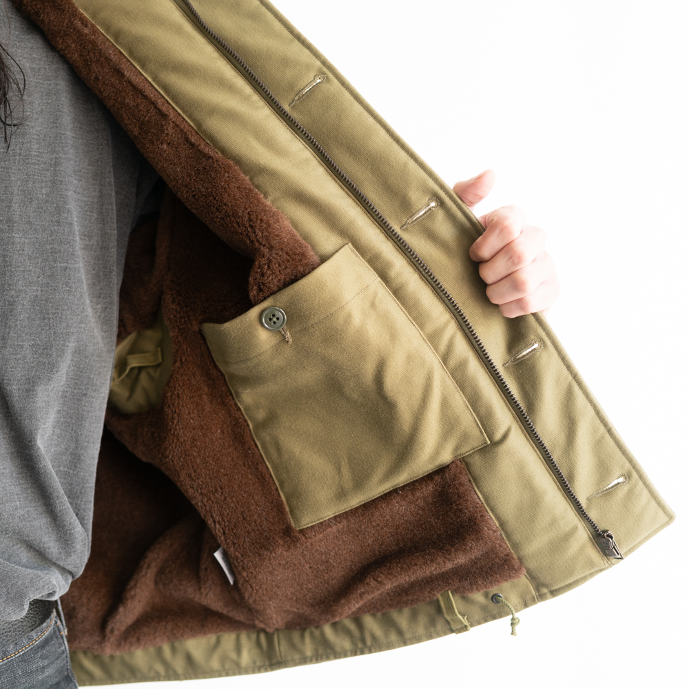 二重織のコットンミリタリークロスとアルパカのボアを使用し