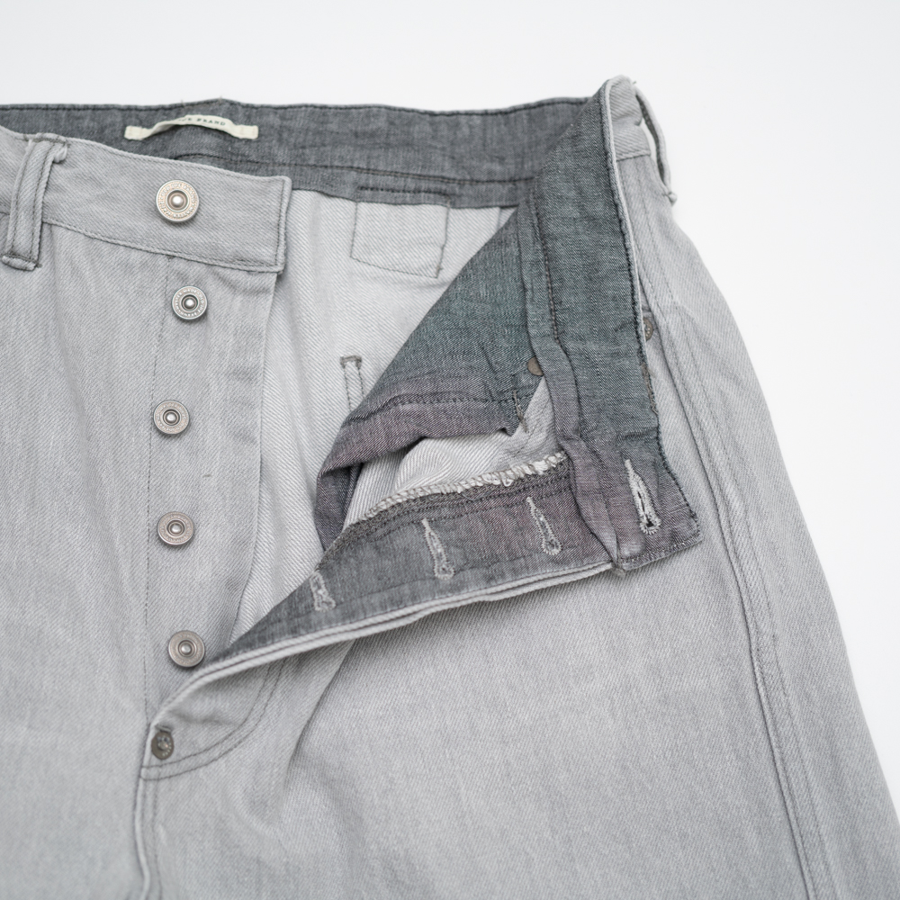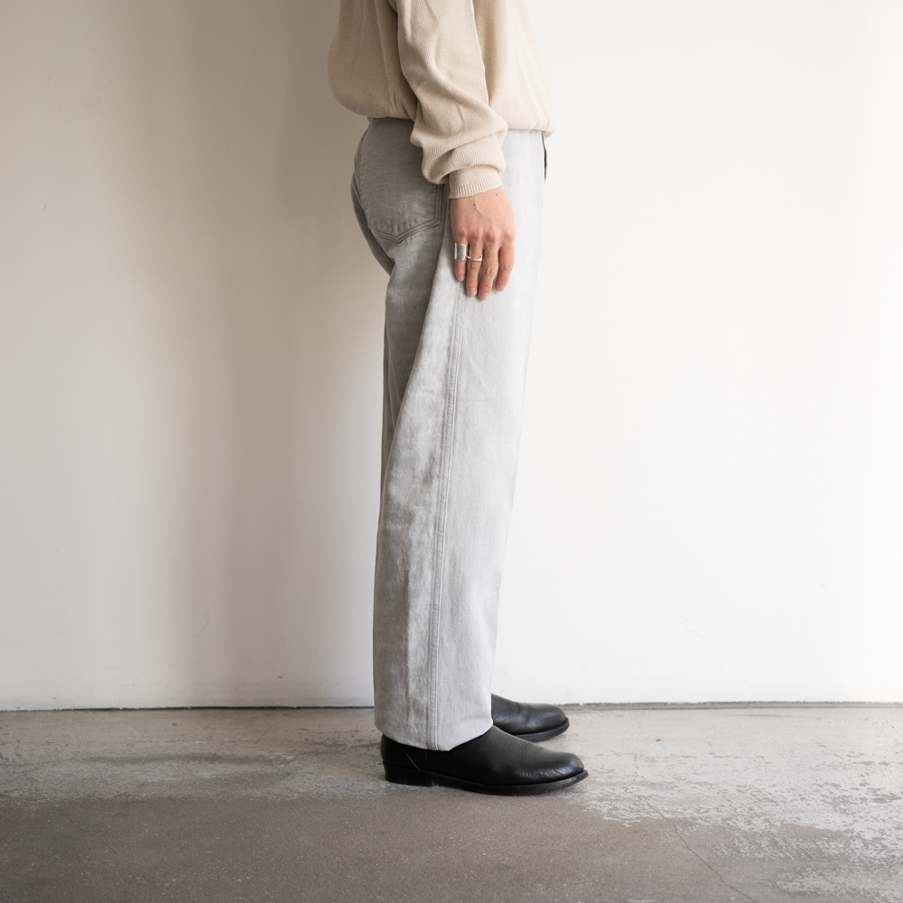 硫化染料使いのグレー。緯糸の黒との相性が良く深みのある色味を表現。