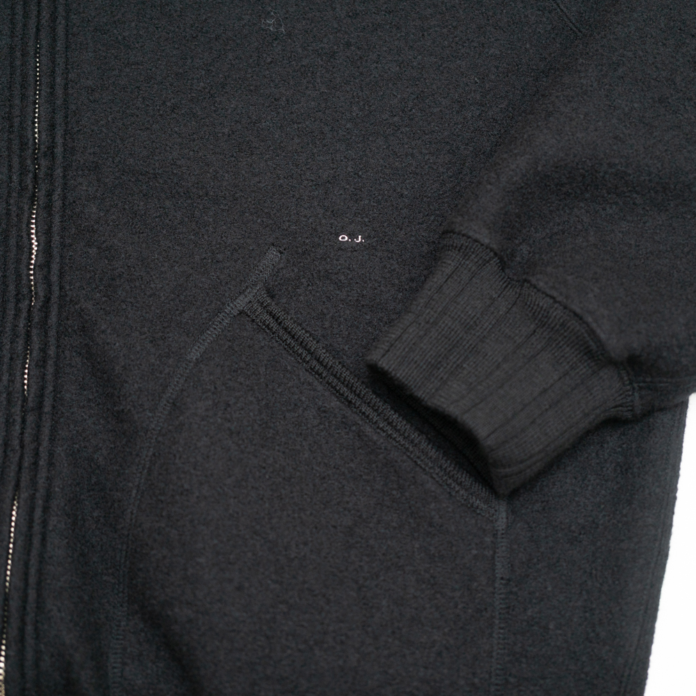 ウール繊維をリング状に整形したファンシーヤーンを使用し、12Gで編み上げたウールリング。リングヤーンならではのふっくらとした表情が魅力。ボリュームのあるリングヤーンで編んだふっくらとした天竺に、フライス加工を施して高密度にすることで、しっかりと厚みのある素材に仕上げた。