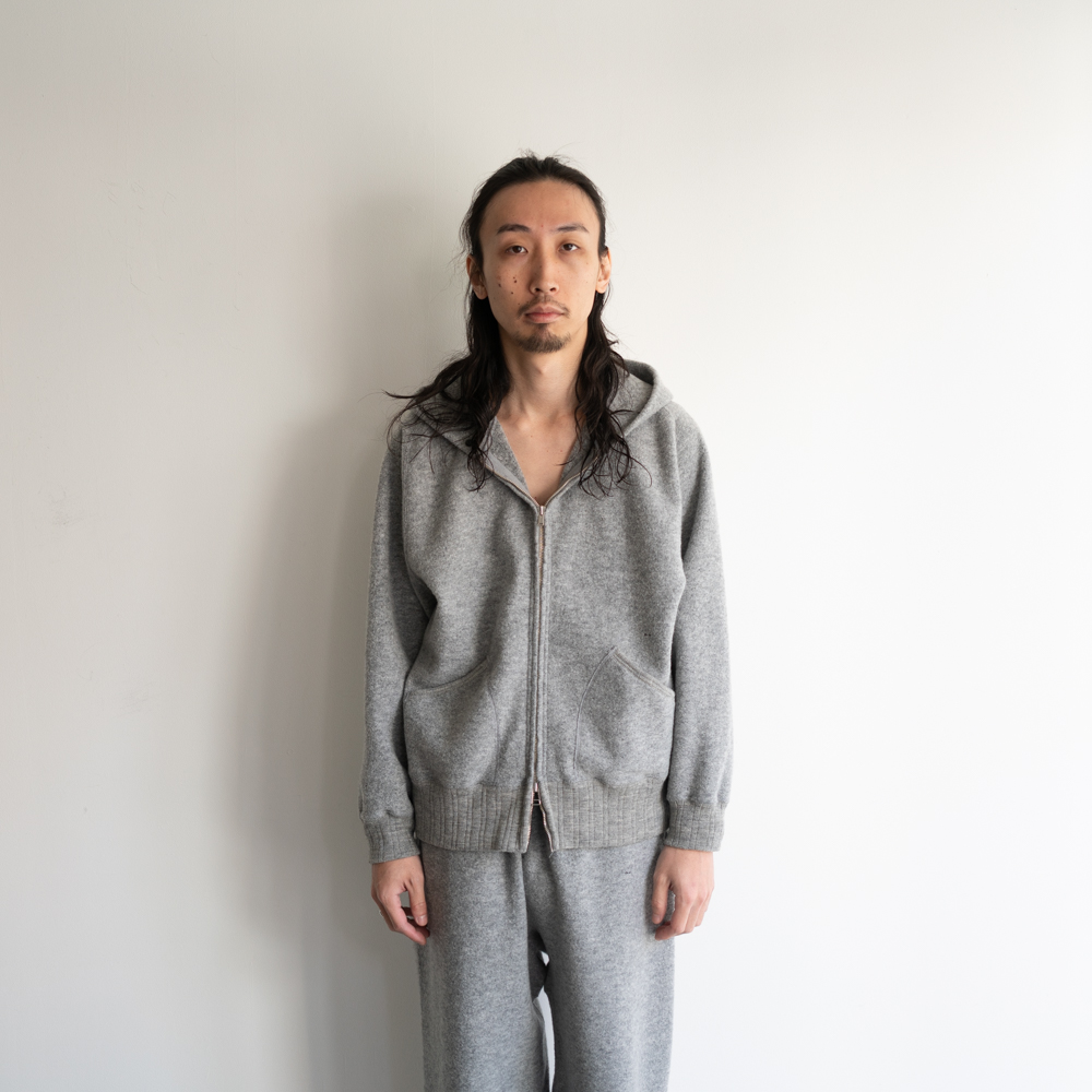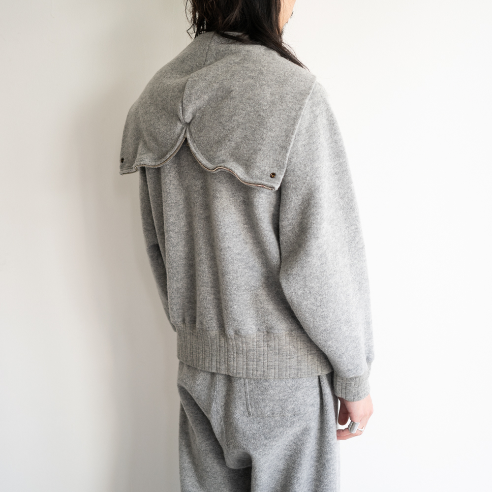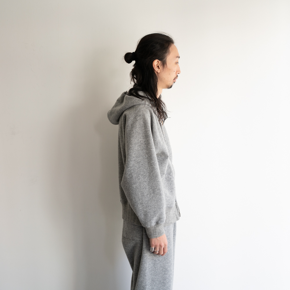 ウールのファンシーヤーンで編み立てたマテリアルは、上質な質感と心地よい肌触りが特徴的。