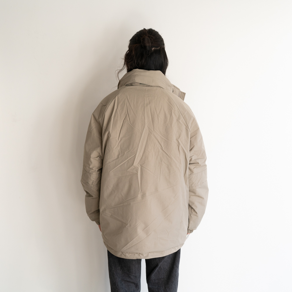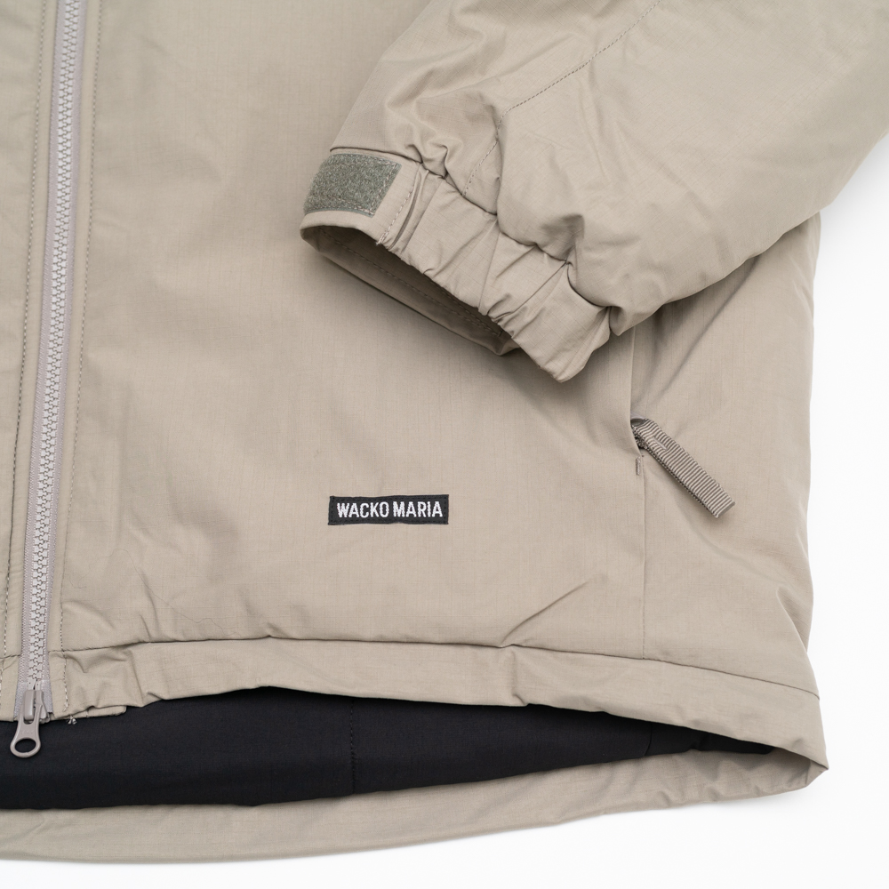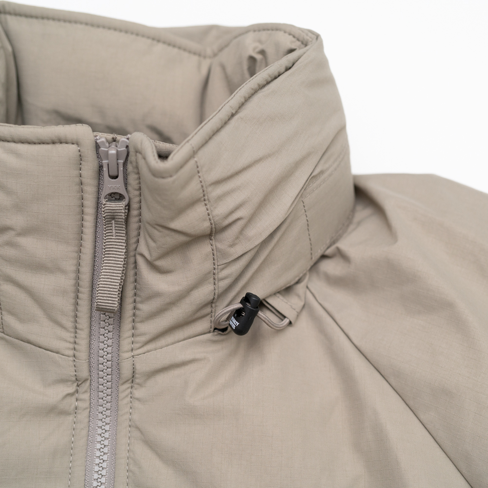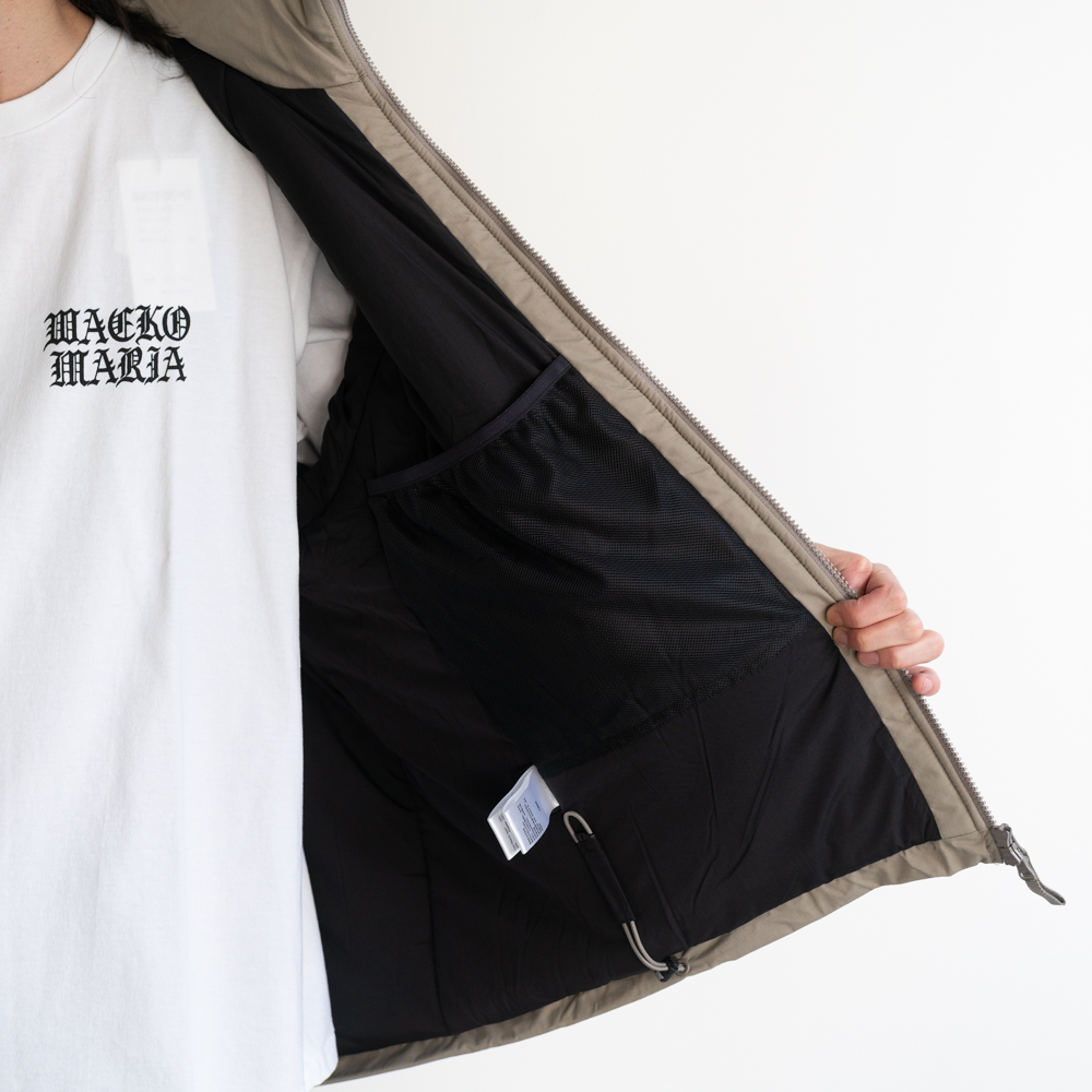 表地はハリとコシのあるナイロン素材、中綿にPRIMALOFTを採用、軽量で保温性と撥水性に優れています。