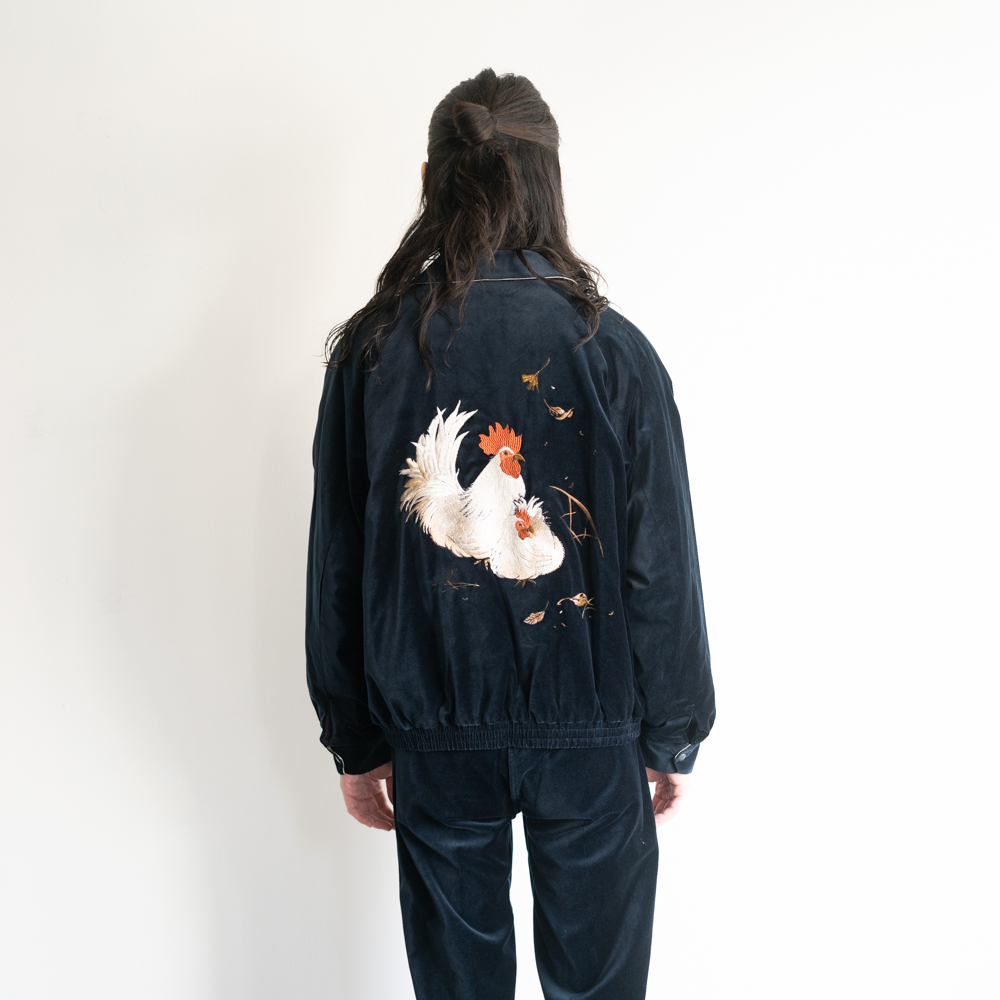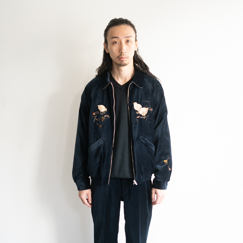 日本の伝統的なテクニックに倣い、古き良き美しい日本の風景を刺繍したジップブルゾン。
