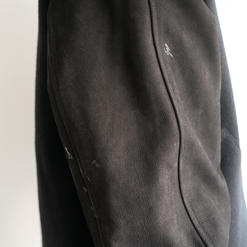 3枚のパーツにより構成される立体的なスリーブはシュリンク作業を施したカウスキンを用いて組み立てられ、その後一点一点、手作業により味だしされます。