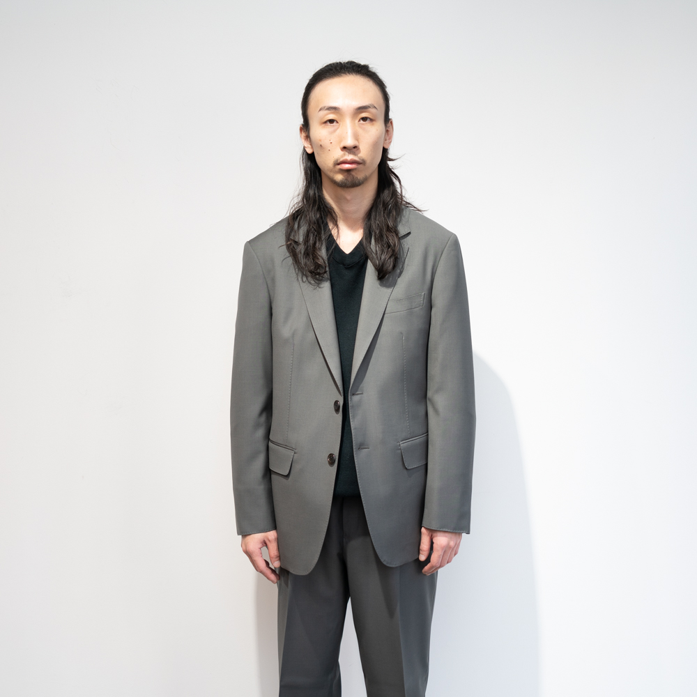 WACKO MARIAの立体的なパターンメイク、ゴージラインが低めのノッチドラペルと、随所に施したAMFステッチ、天然素材のものを使用した芯等、"仕立ての良いスーツ"のセオリーに則っていますが、ドレスからカジュアルまで対応できる1着です。