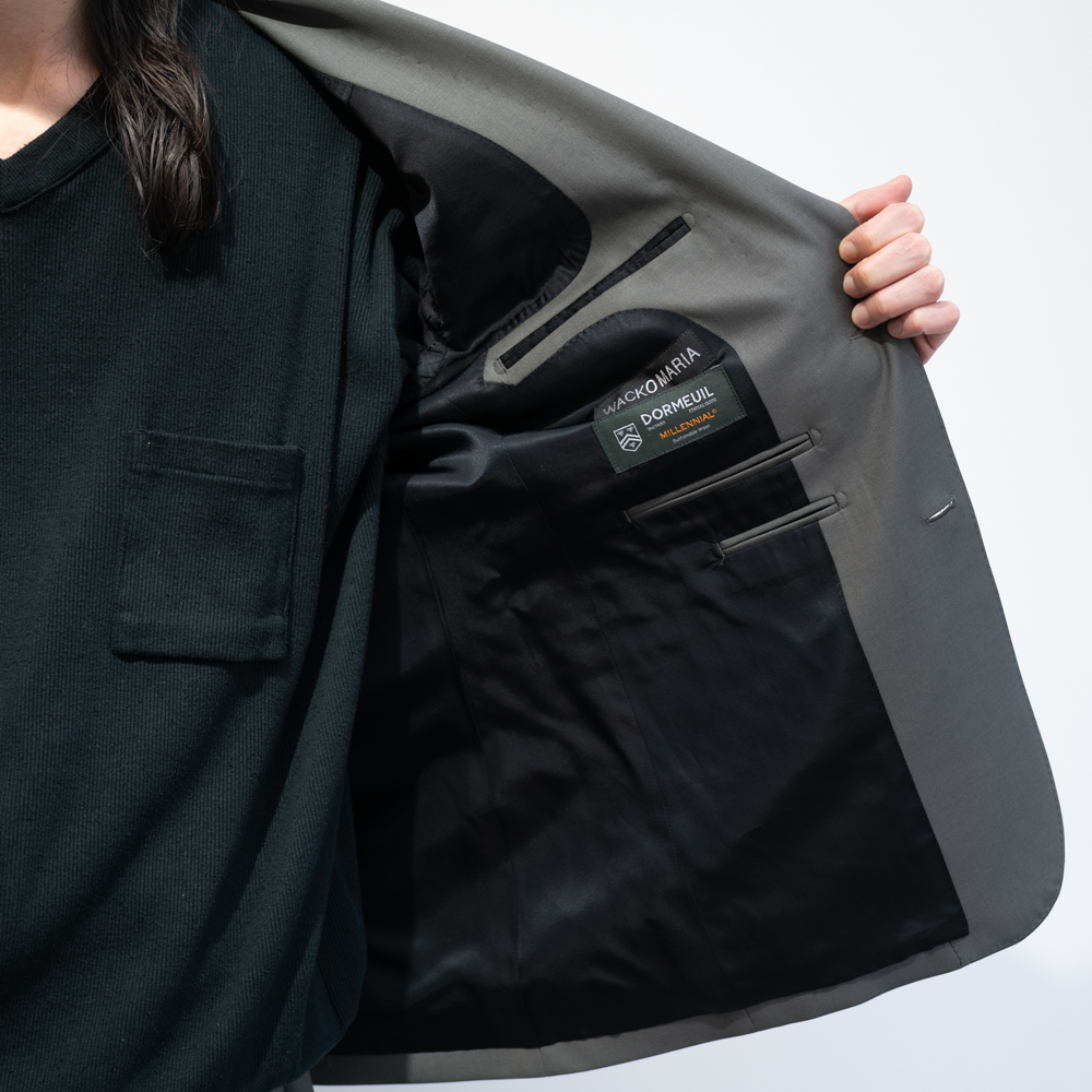 イタリアのテキスタイルメーカーDORMEUIL(ドーメル)社から厳選したスーパーウールで製作した、WACKO MARIA(ワコマリア)のラペルジャケット。