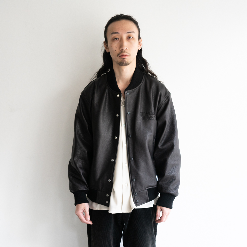 WACKO MARIA (ワコマリア) のスタジャンのオールレザータイプはシボのあるカウハイドで製作。