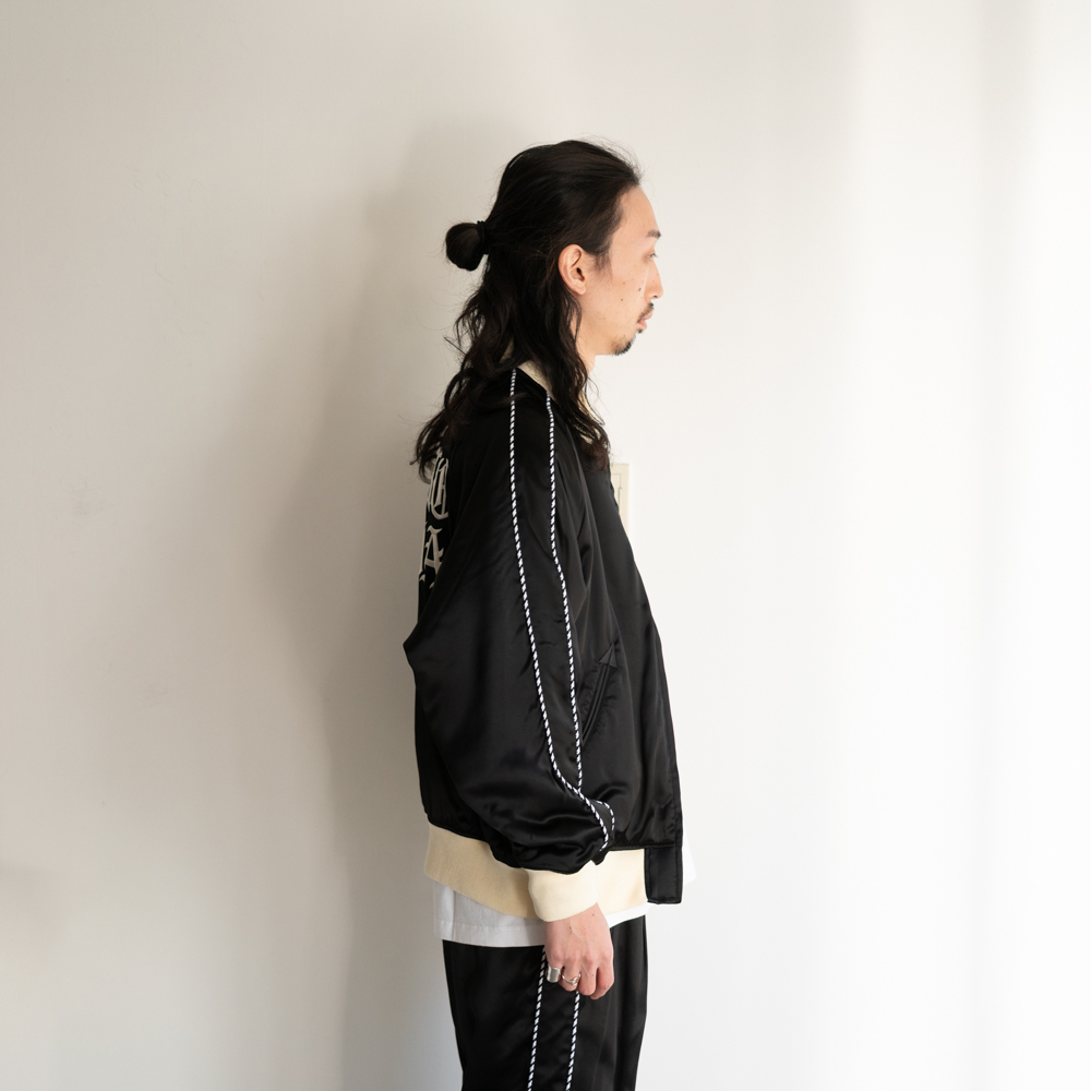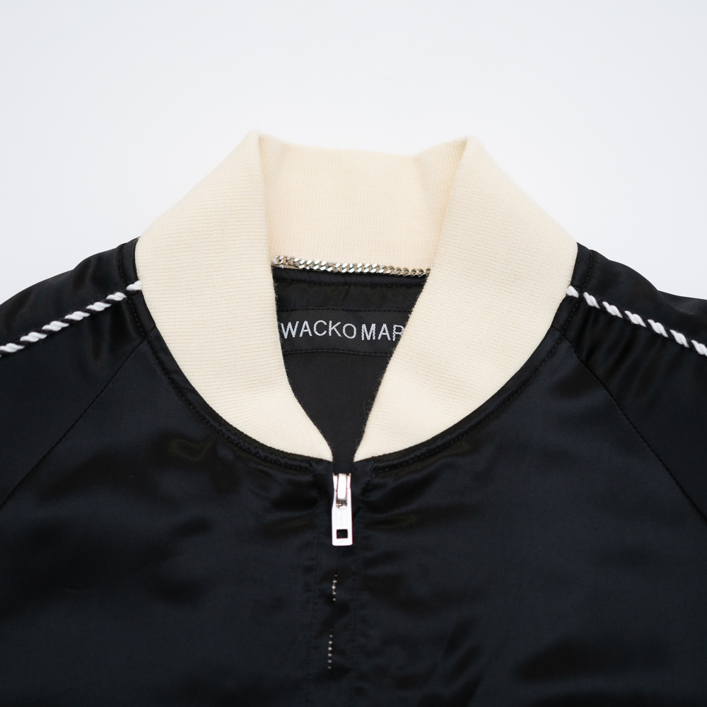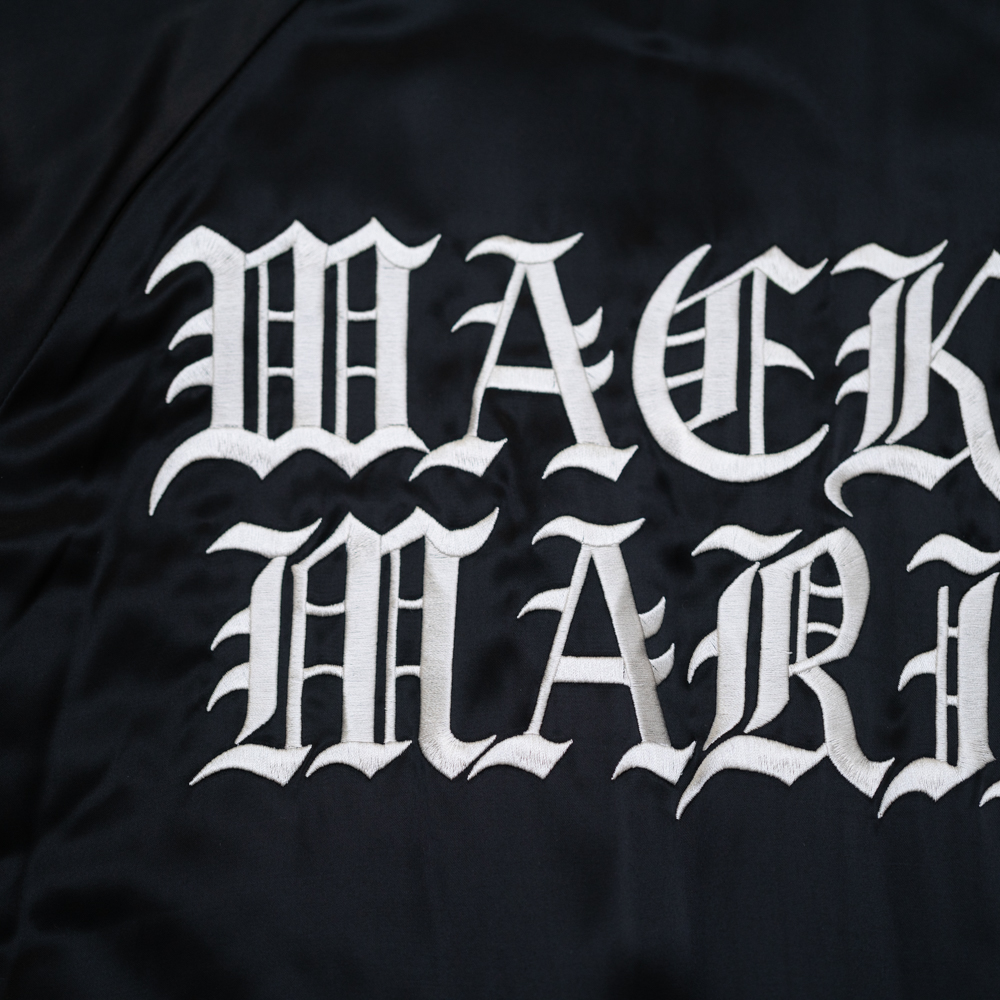 レーヨン生地にWACKOMARIA(ワコマリア)のロゴを刺繍したスカジャケット。