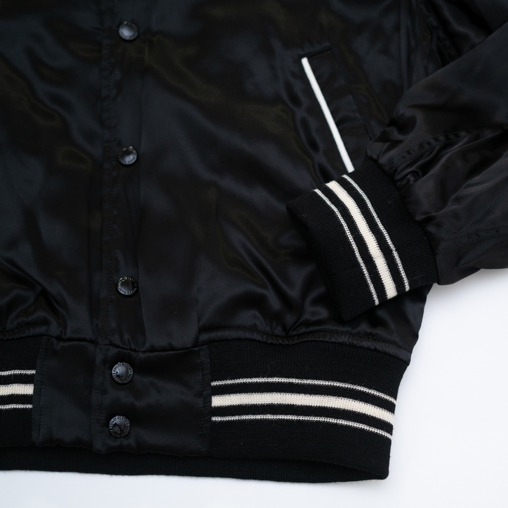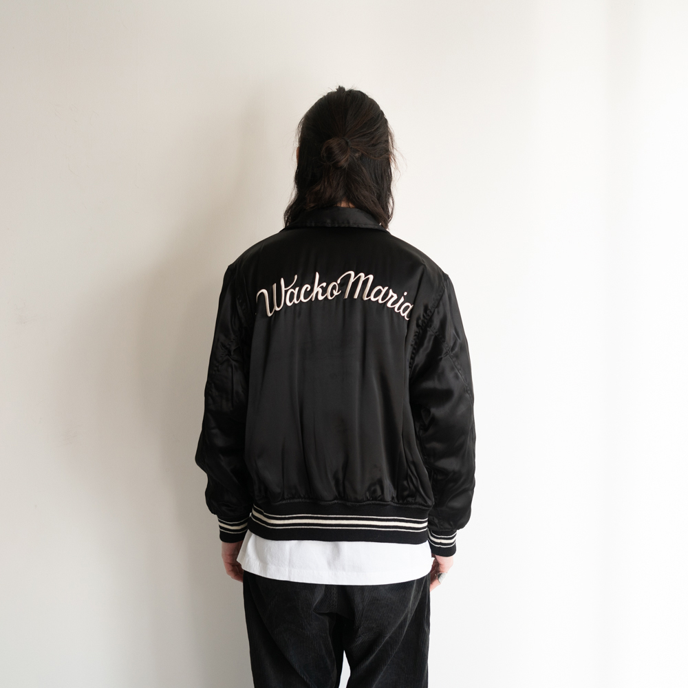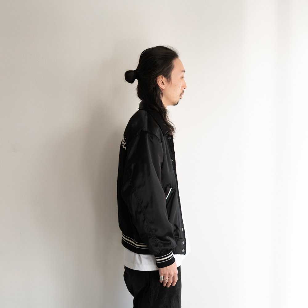 レーヨン生地にWACKOMARIA(ワコマリア)のロゴを刺繍したスカジャケット。