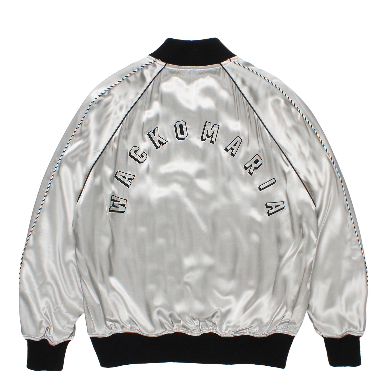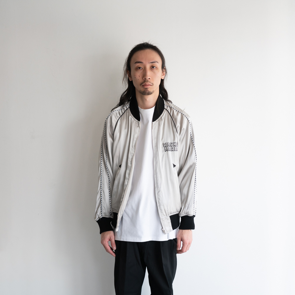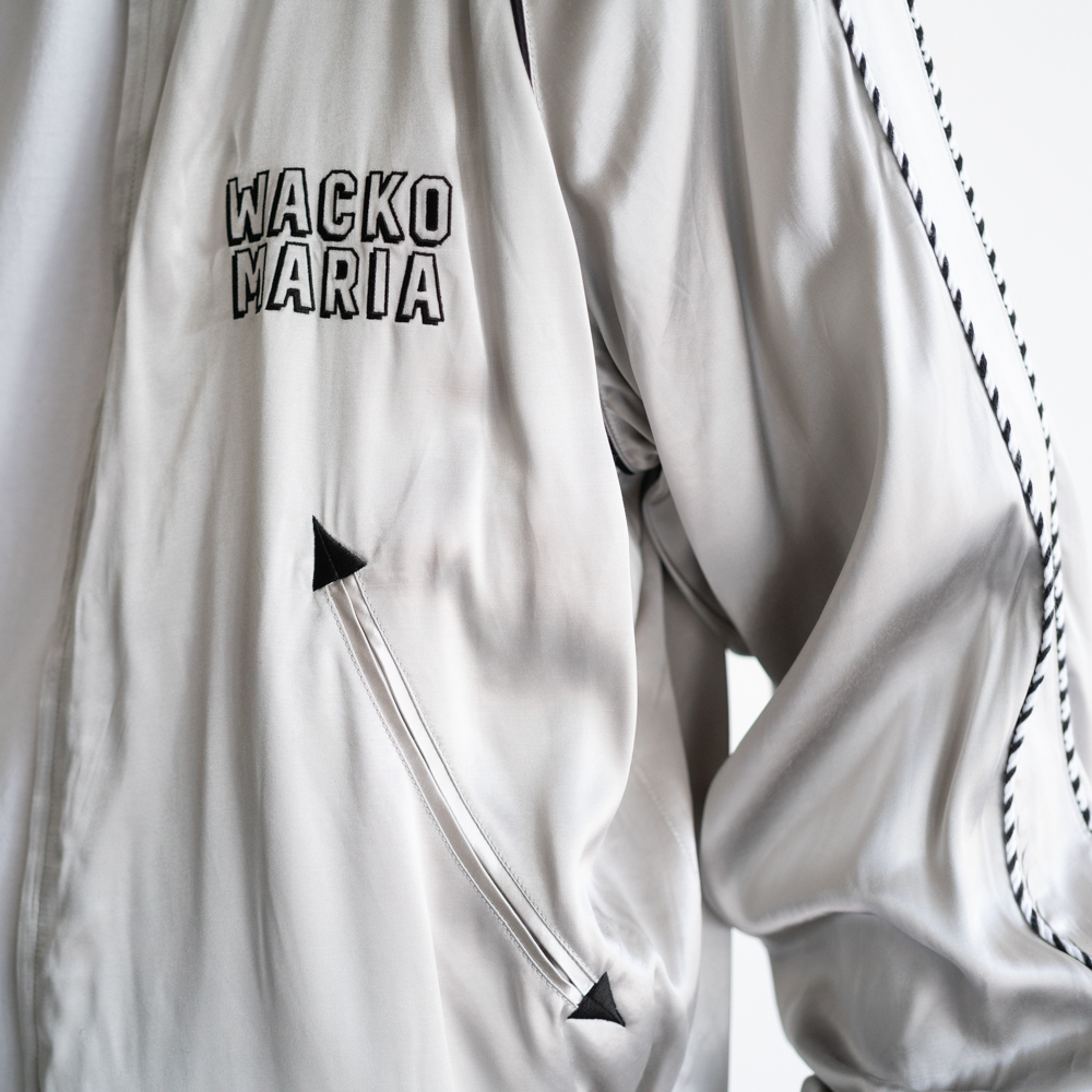 レーヨン生地にWACKOMARIA(ワコマリア)のロゴを刺繍したスカジャケット。