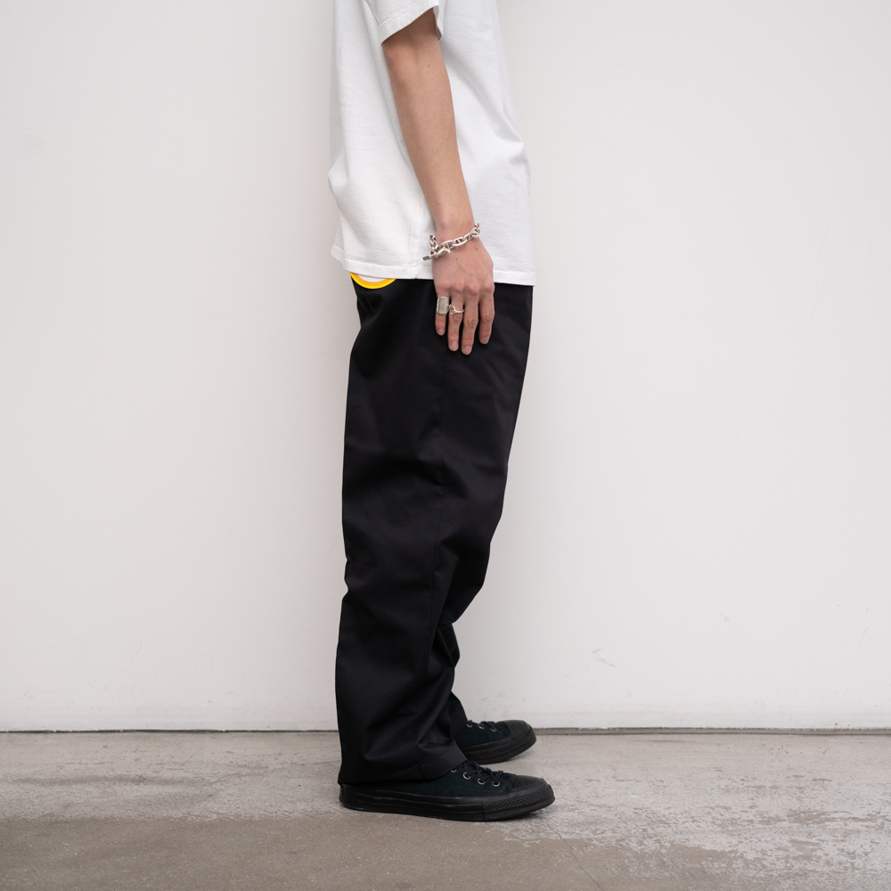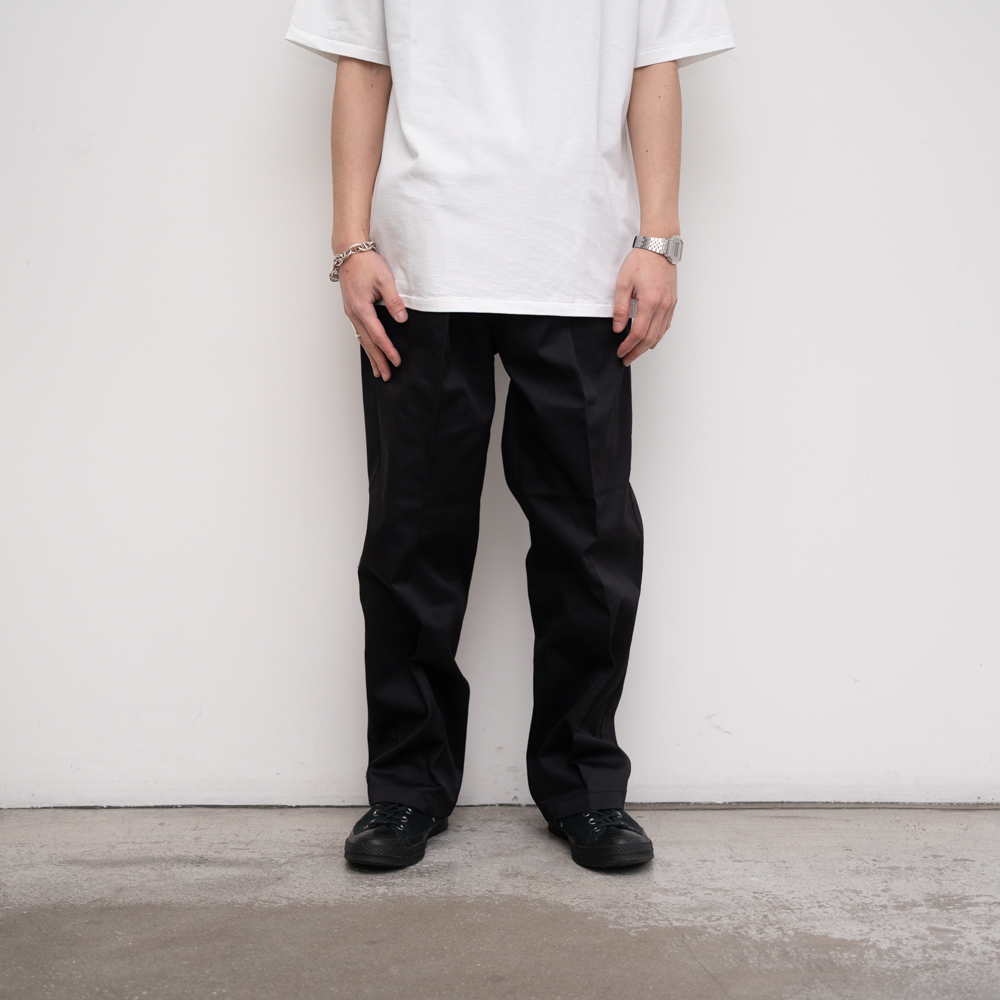 タフでハリのあるDICKIESのポリエステル/コットンを使用した、プリーツ入りのワイドなトラウザーです。