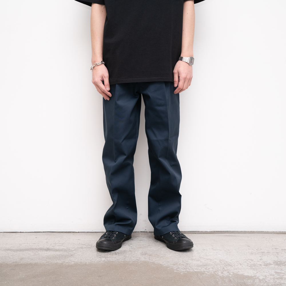 タフでハリのあるDICKIESのポリエステル/コットンを使用した、プリーツ入りのワイドなトラウザーです。
