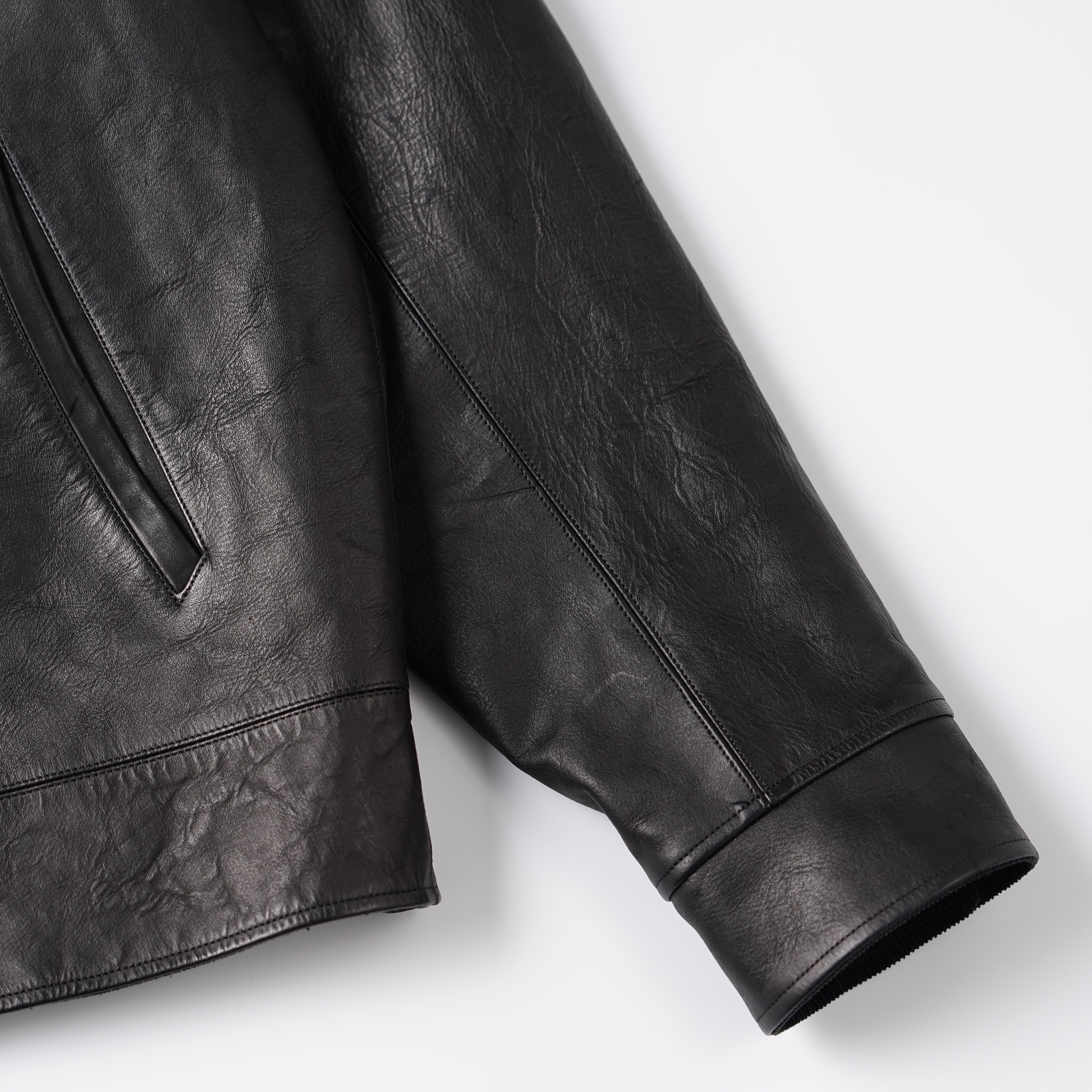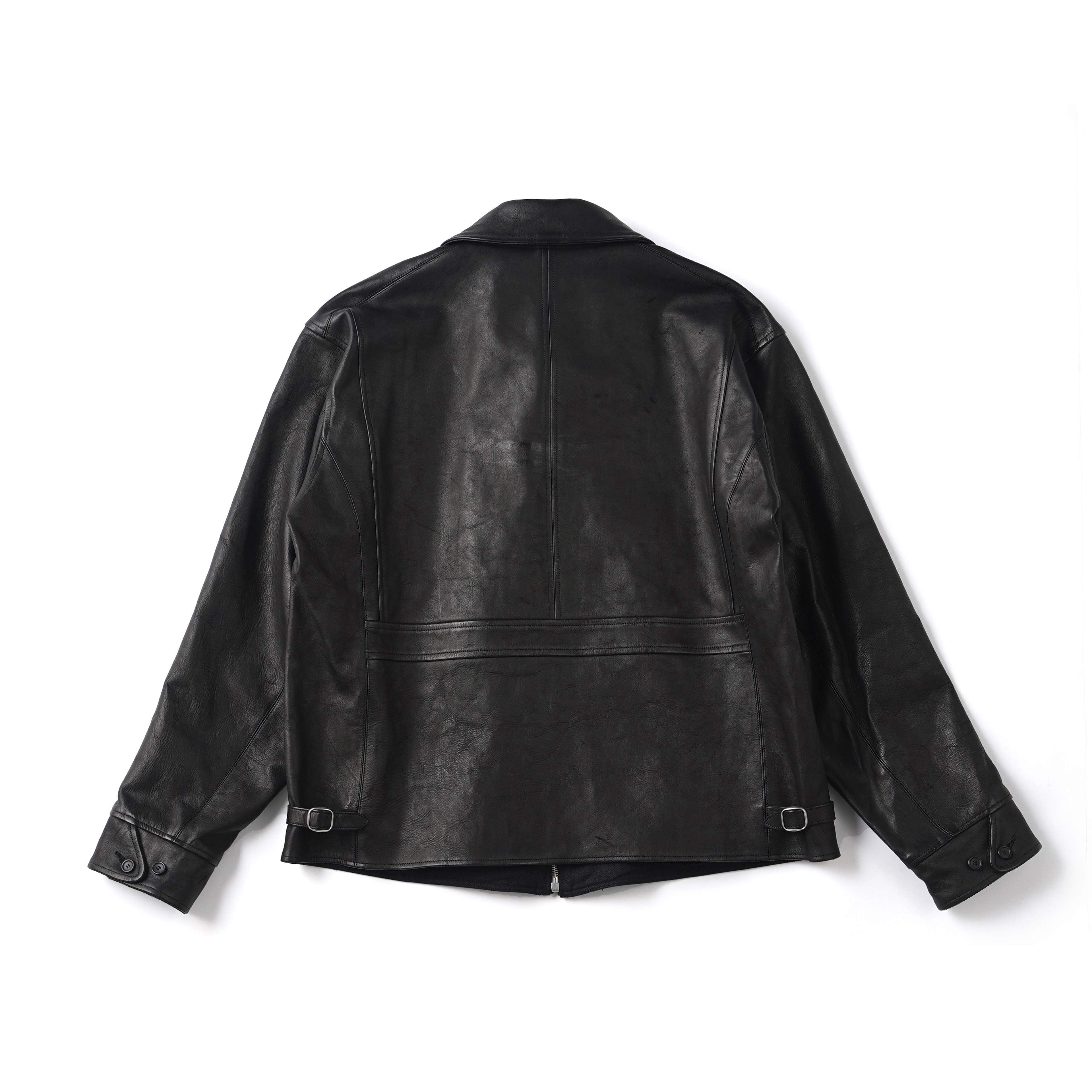 ざらつきのある手触りと色むらのある色調の、ラフでワイルドな仕上げが特徴のホースレザー。ソフトホース系よりも凹凸感をあえて残しており、色合いや質感が一着ずつ異なる一点物となります。