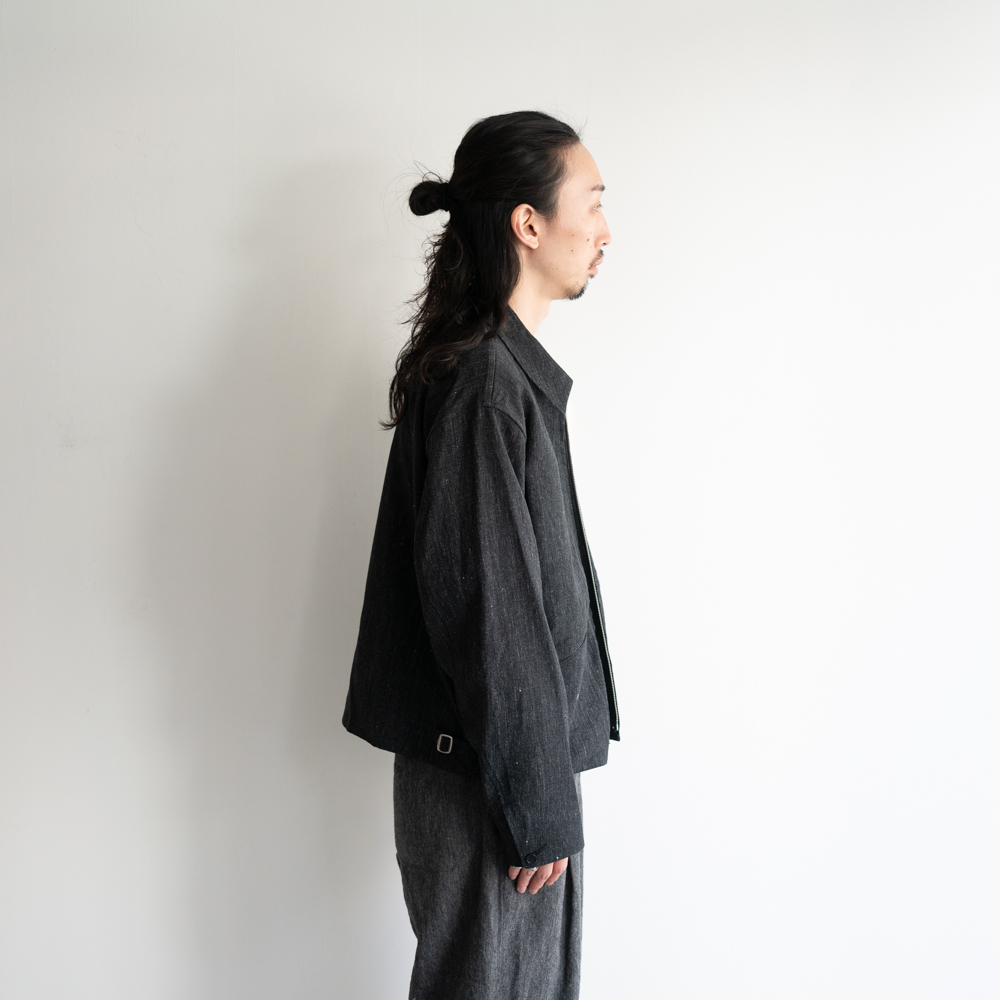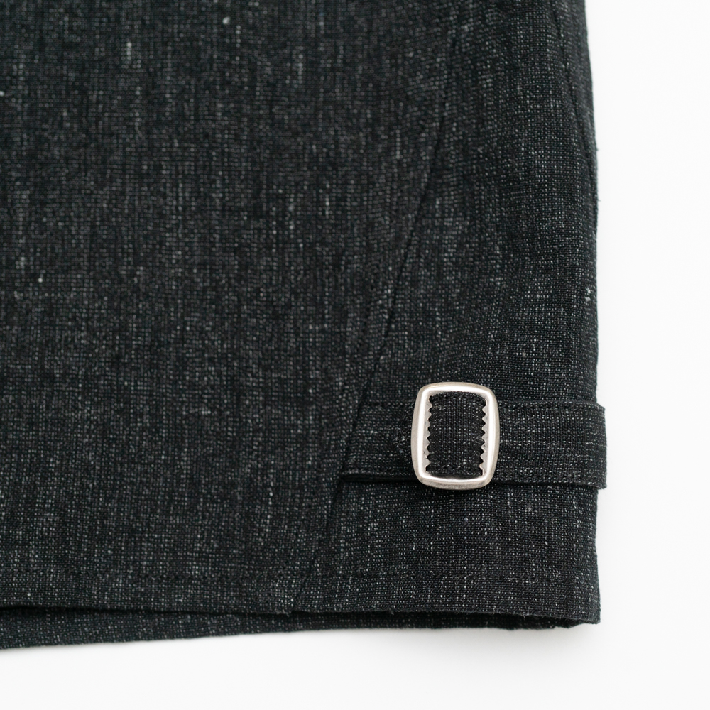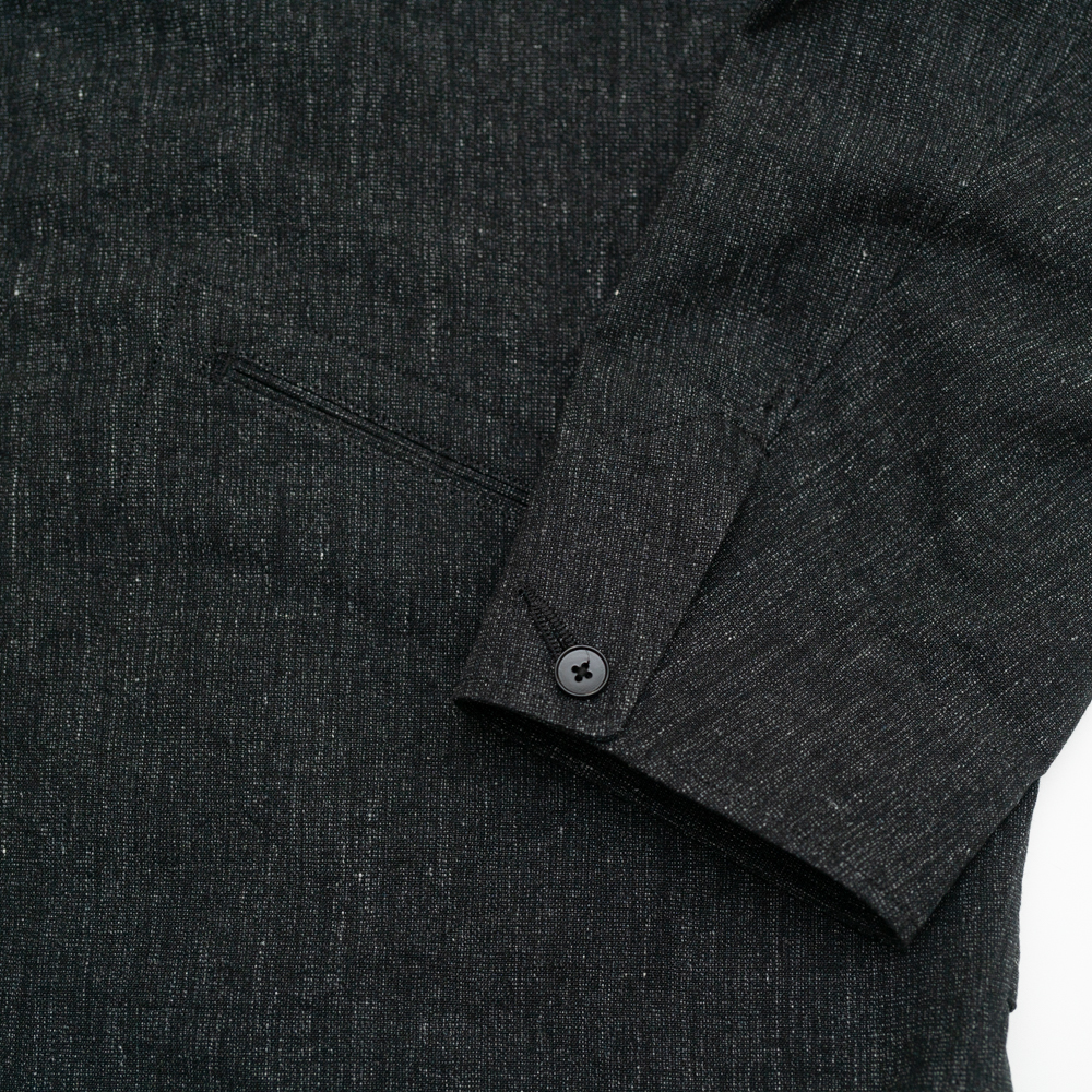 リネンTOP糸と綿麻の混紡糸を強撚して高密度で製織し、強撚による硬さと、生地規格による詰まり感が独特の風合いを感じることができる。