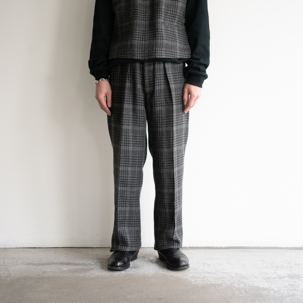 ブレザーとセットアップでの展開となるドレープトラウザー。