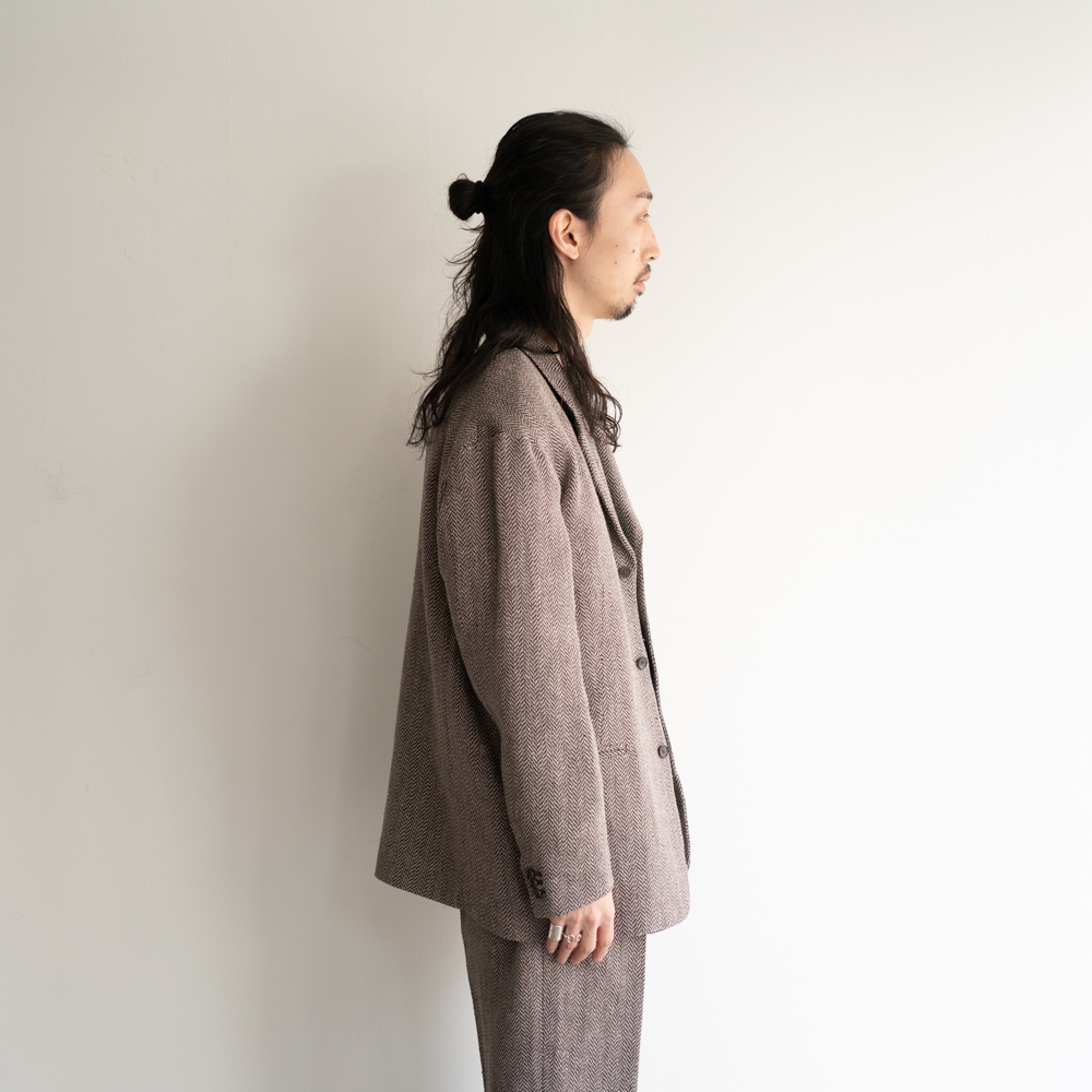 ラペルの返り位置や低めのゴージライン、アームホールに配されたアクションプリーツ、フラップレスのD型閂付き腰ポケットに、緩やかなアールのついた胸ポケットなど、さりげない仕様の中にクラシカルな要素が見え隠れします。