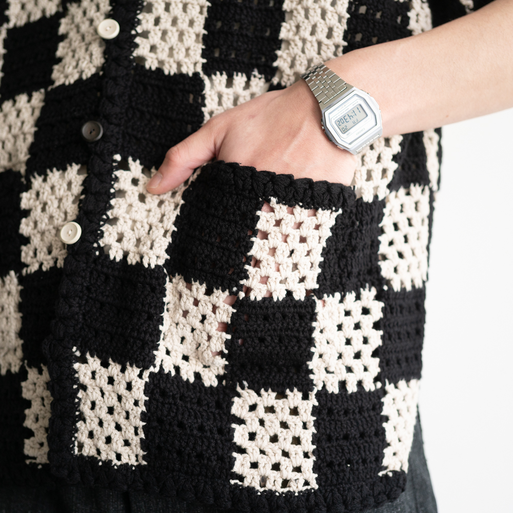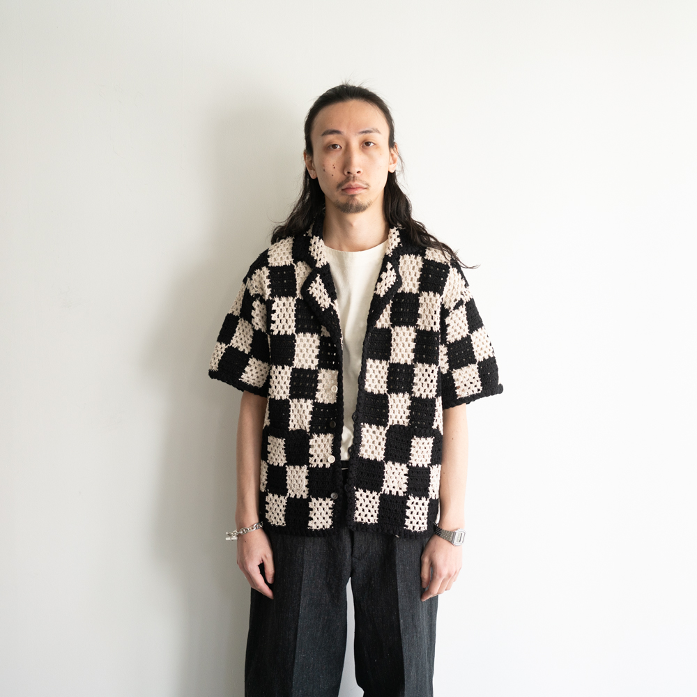 古い手編みのかぎ針柄をモチーフにサマーシャツとして仕上げたOLD JOEのクロシェニット。